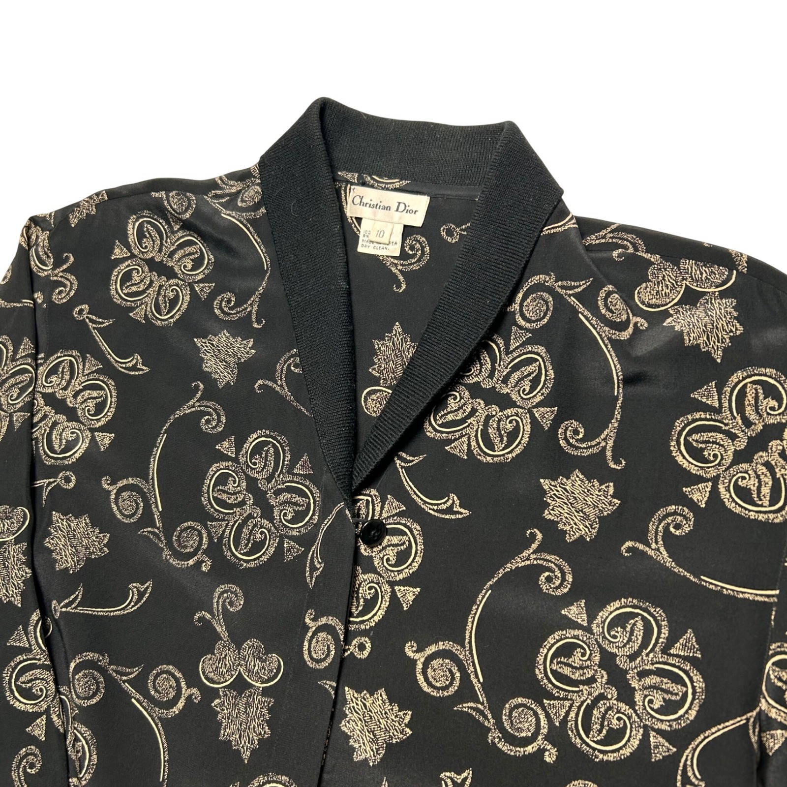 Christian Dior Vintage 100 Silk Blouse Shawl Collar 10 Black Gold Elegant City