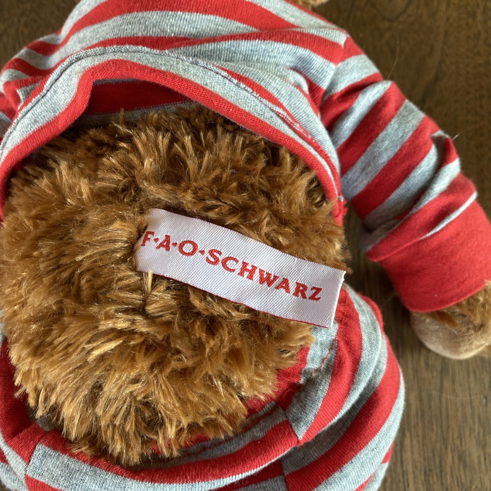 как выглядит FAO Schwarz Teddy Bear Plush 18 Brown Stuffed Animal w Red Gray Striped Pajamas фото