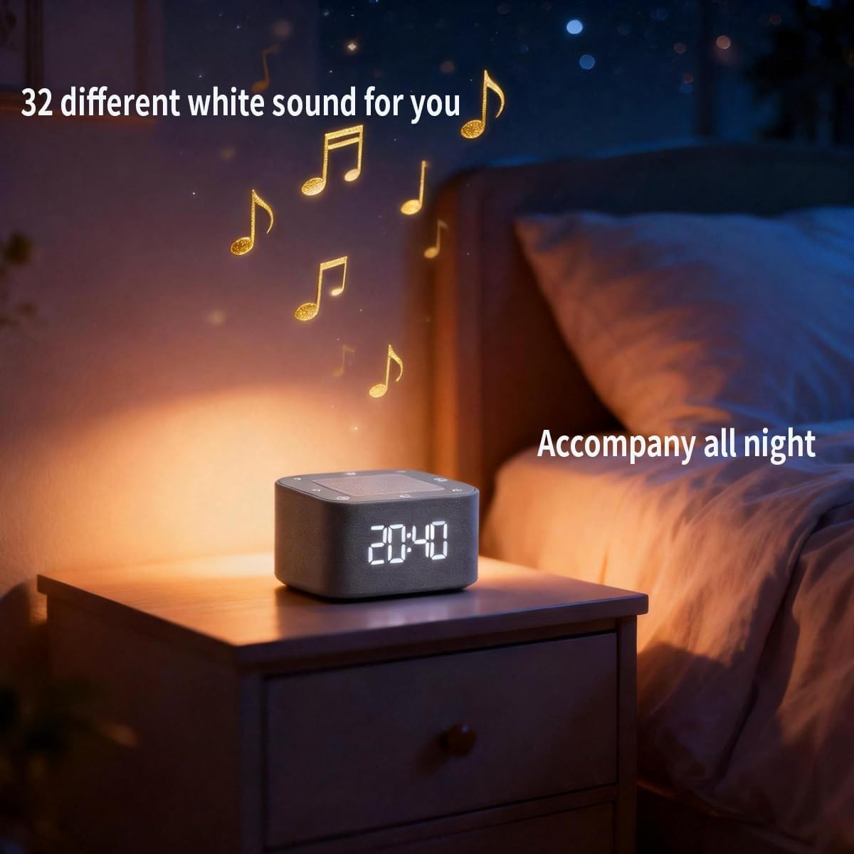 Smart White Noise Machine with Bluetooth Digital Clock 32 Sounds for Sleep