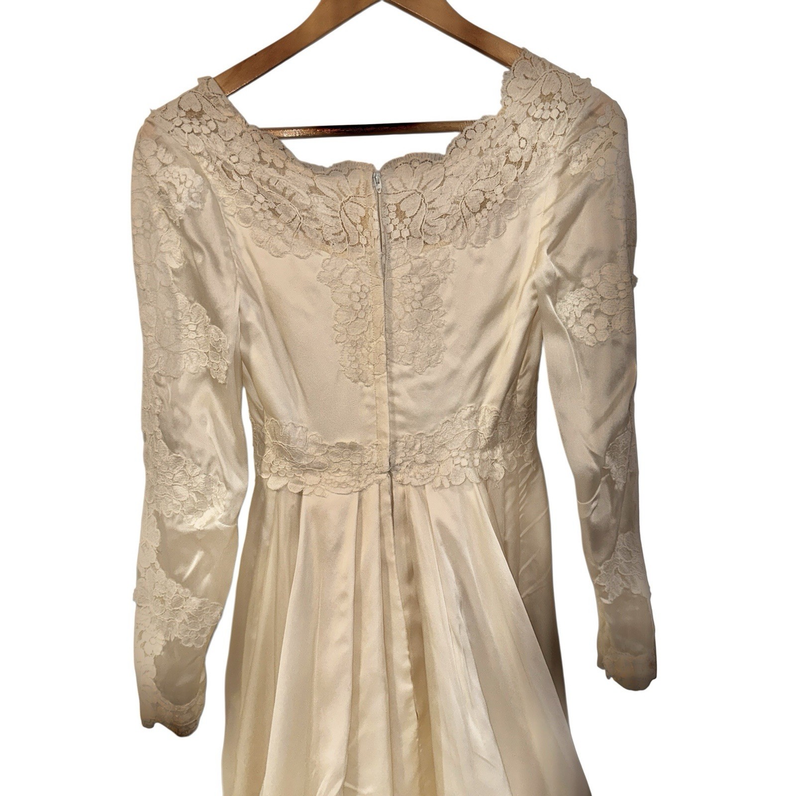 Vintage Wedding Dress 1950s William Cahill Size XS Ivory Long Sleeves Train