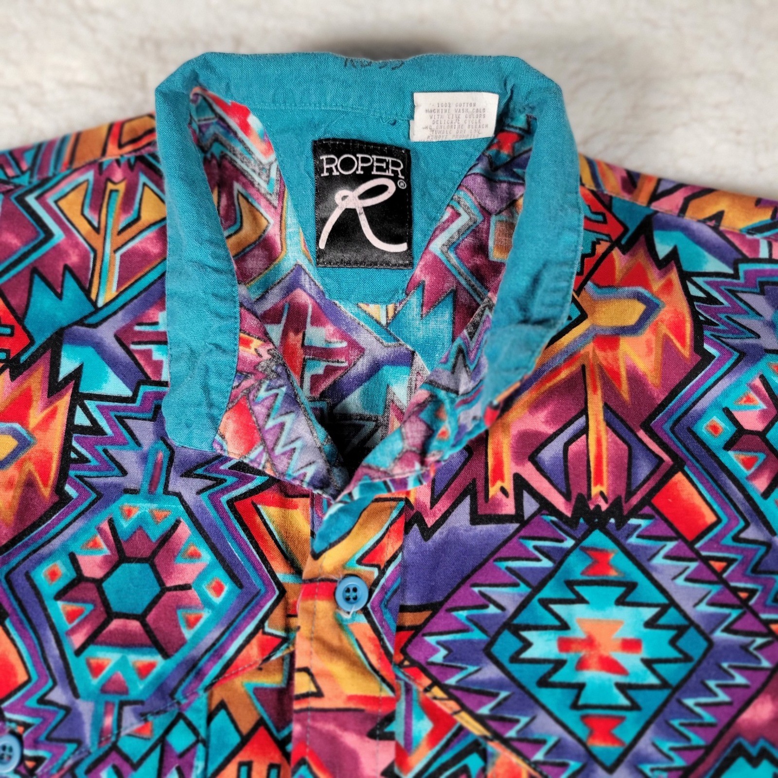 Vintage 90s Roper Mens Large Southwestern Geometric Button up Shirt USA Rodeo