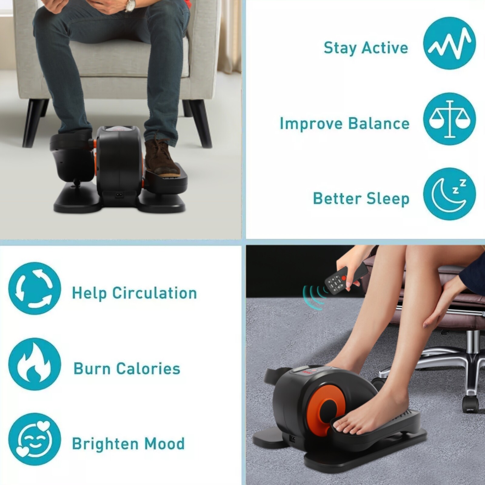Under Desk Electric Elliptical Machine Leg Exerciser W/ Remote Control Home