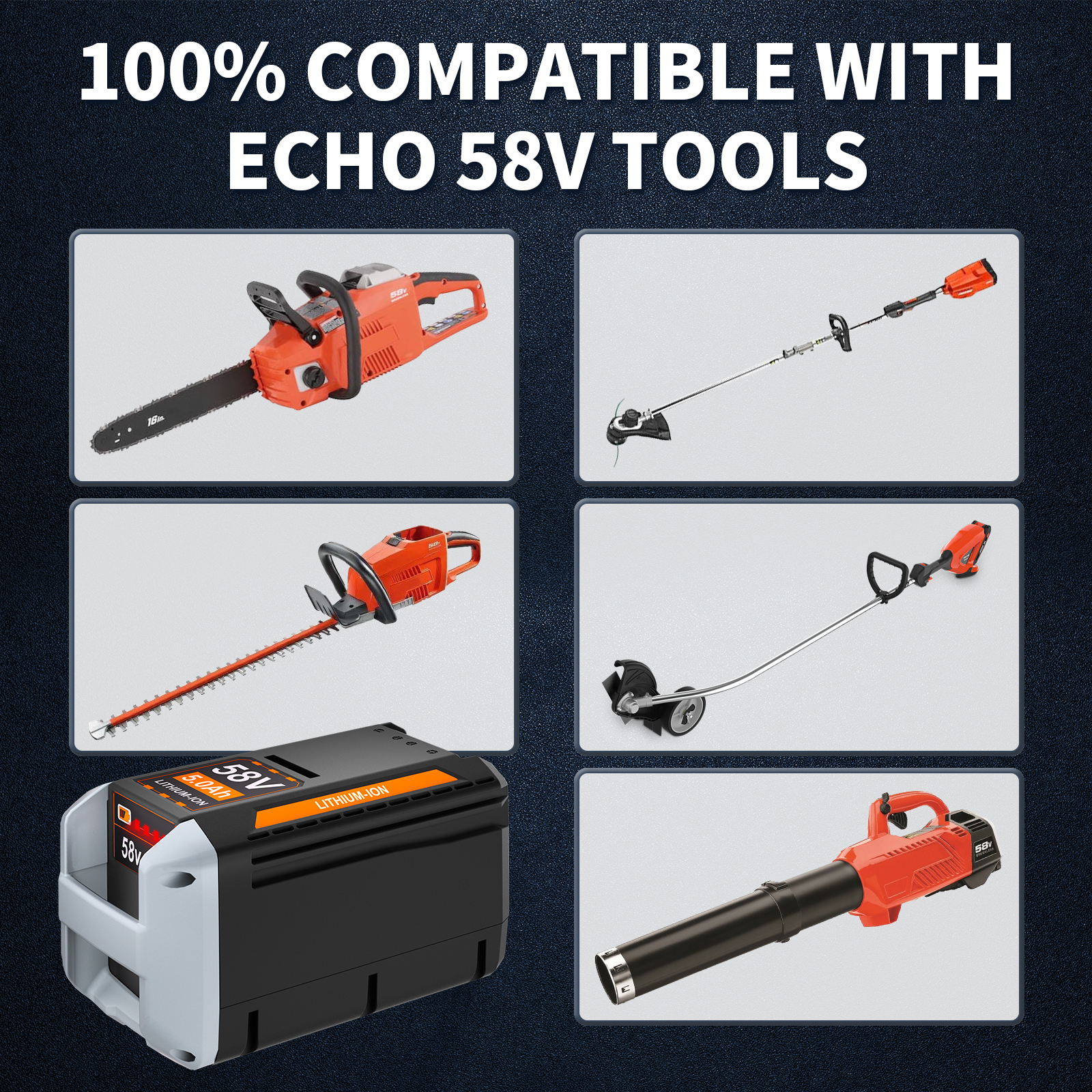 Совместимая модель: Compatible with all ECHO 58V Cordless power tools