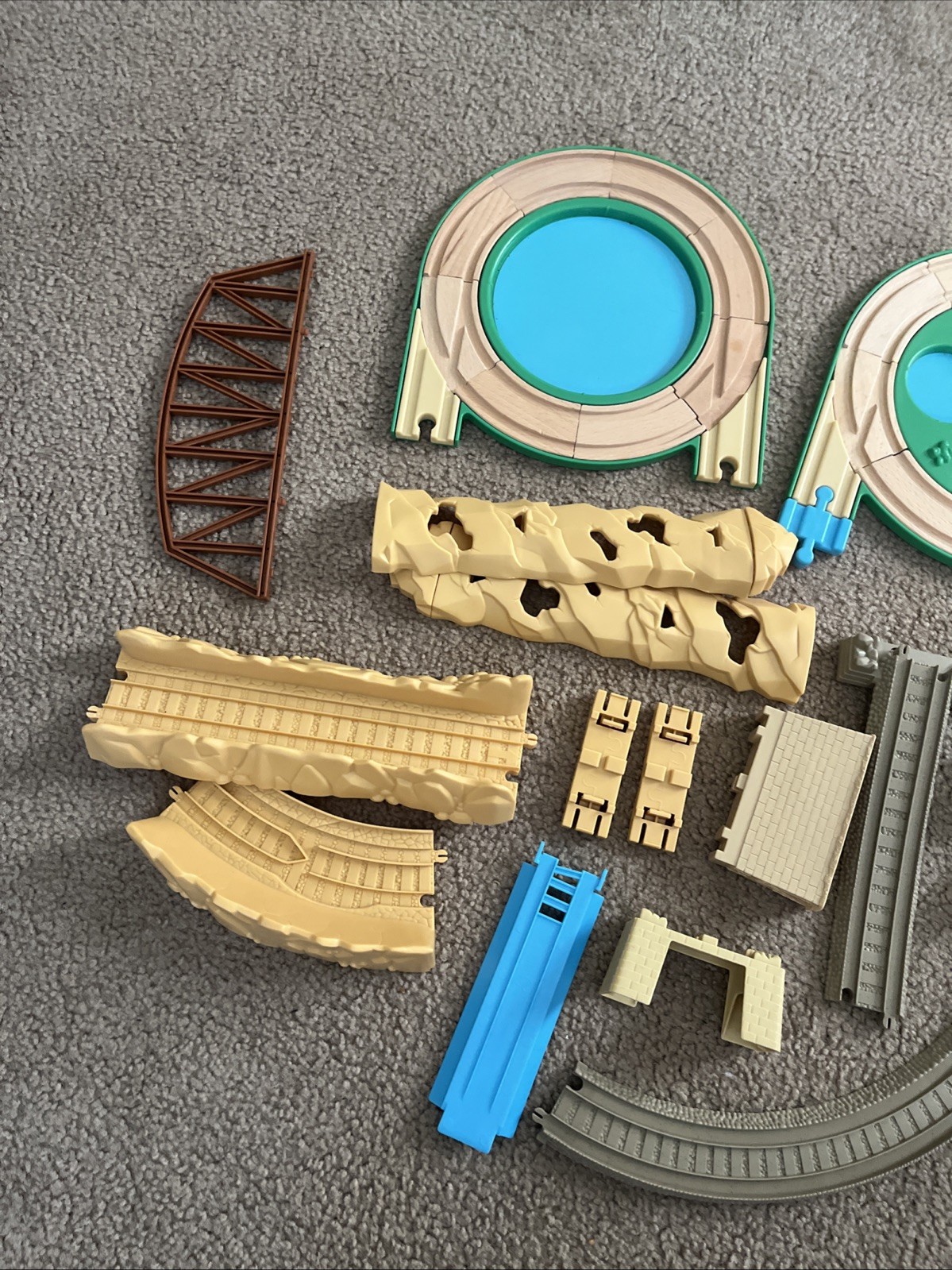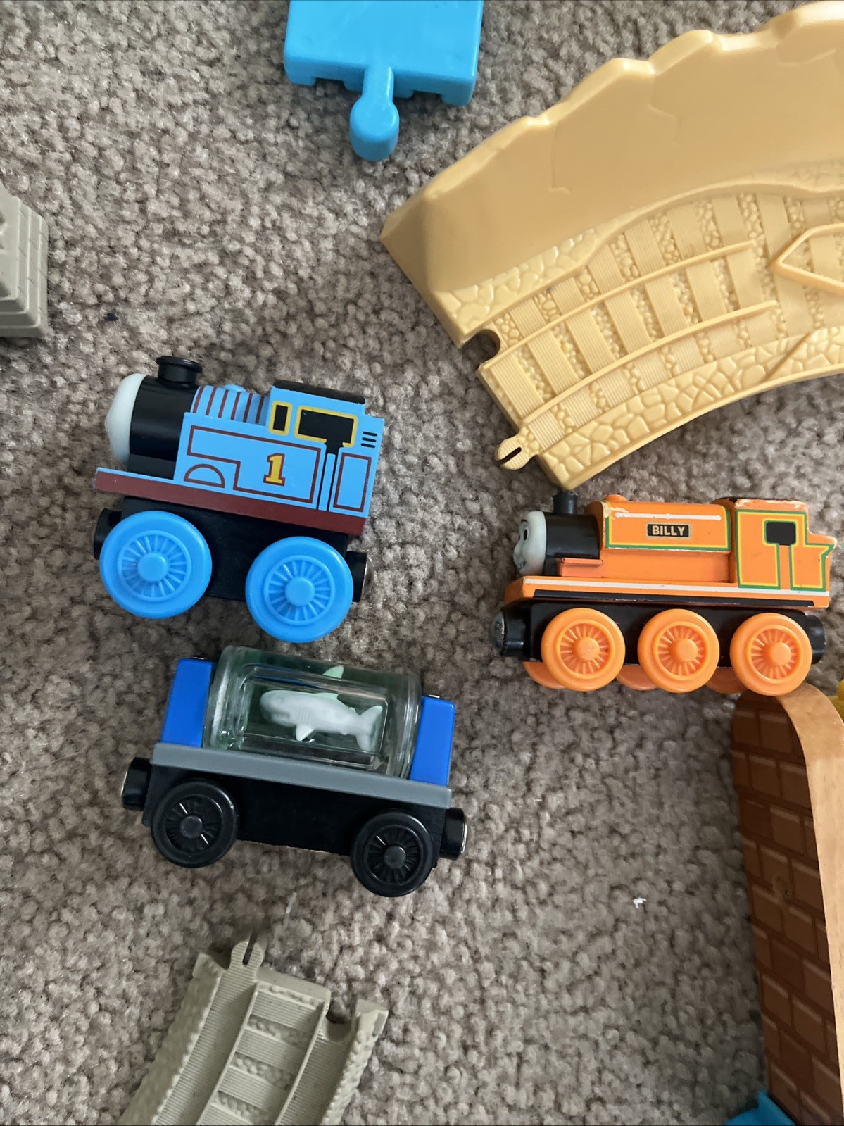 Large Lot Vintage Thomas Friends, Wooden Railway Trains Tracks Car Wash.