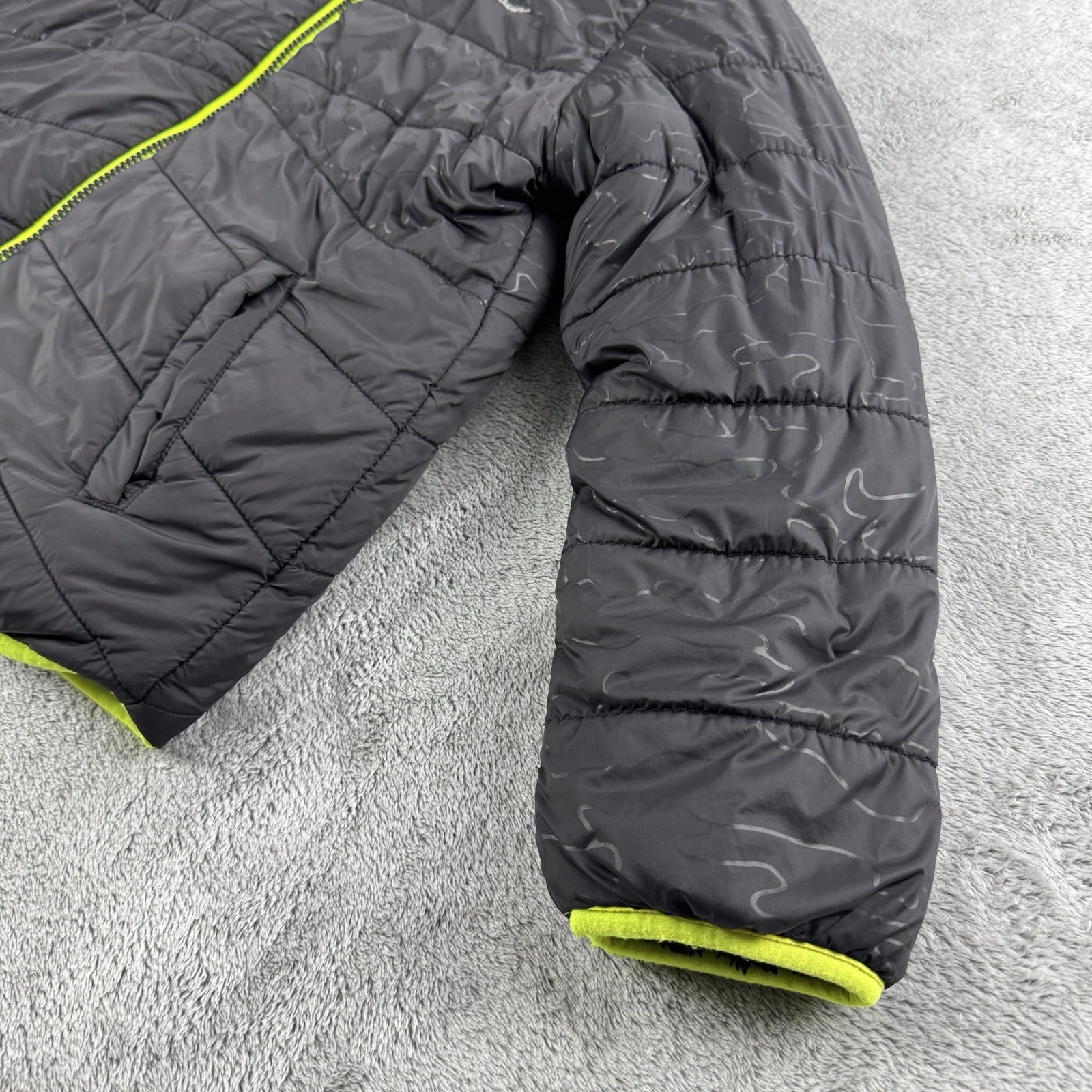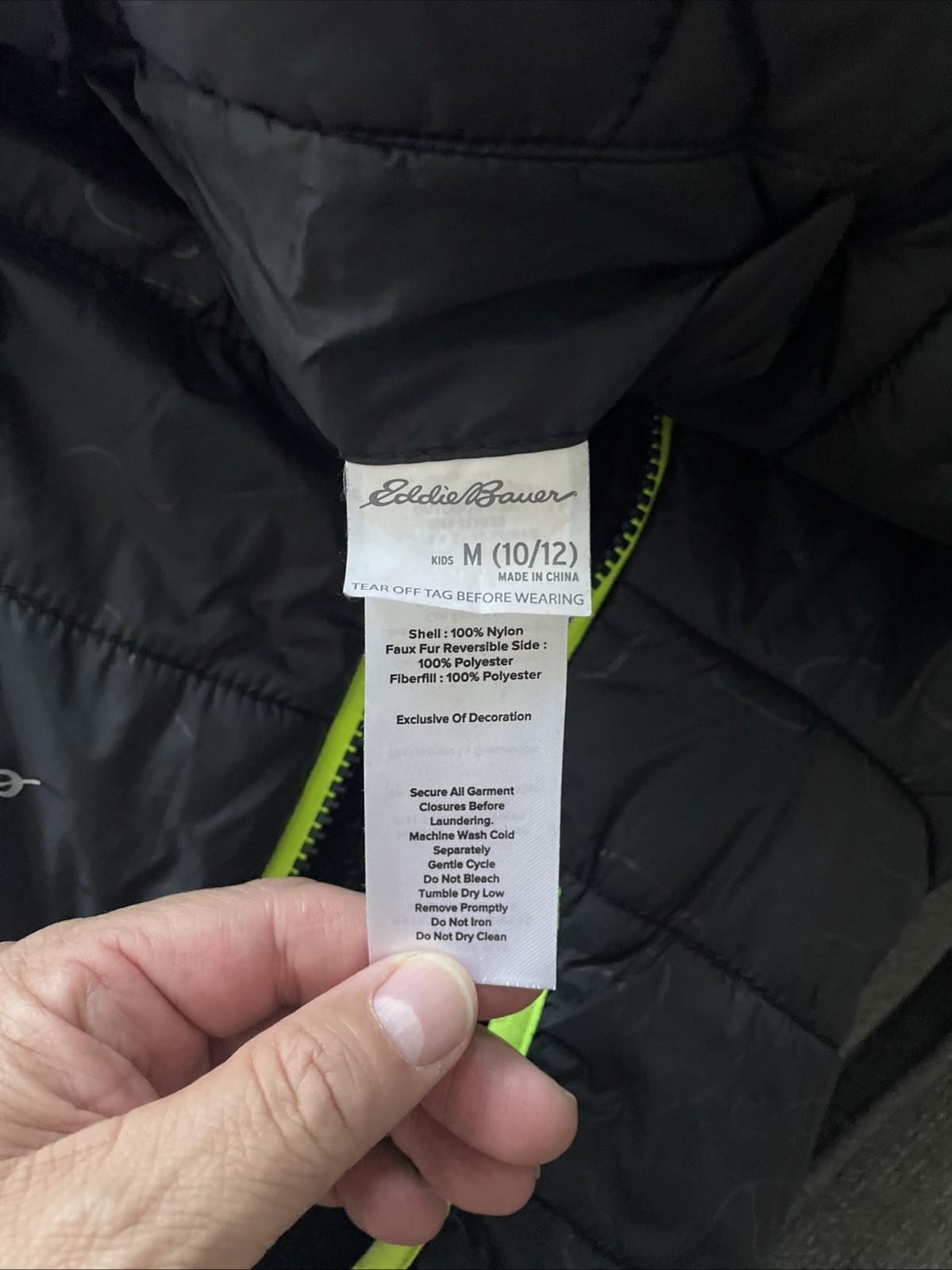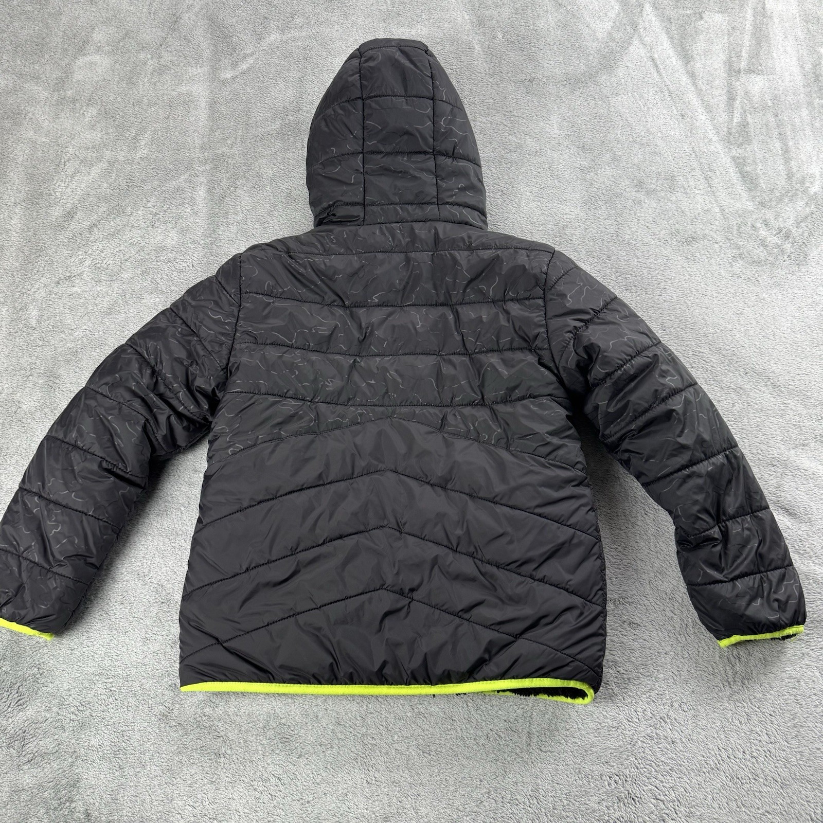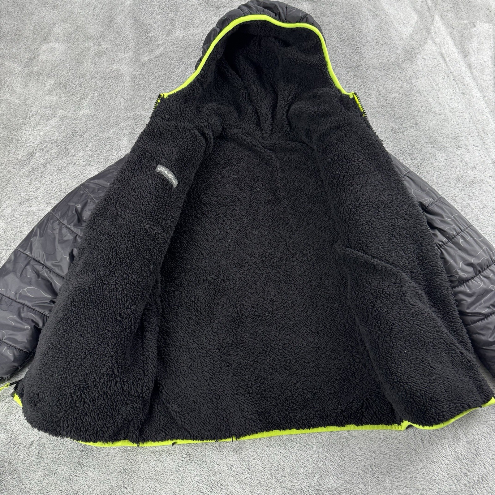 как выглядит Eddie Bauer Reversible Youth Black Down Puffer Jacket Size M 10/12 With Hood фото