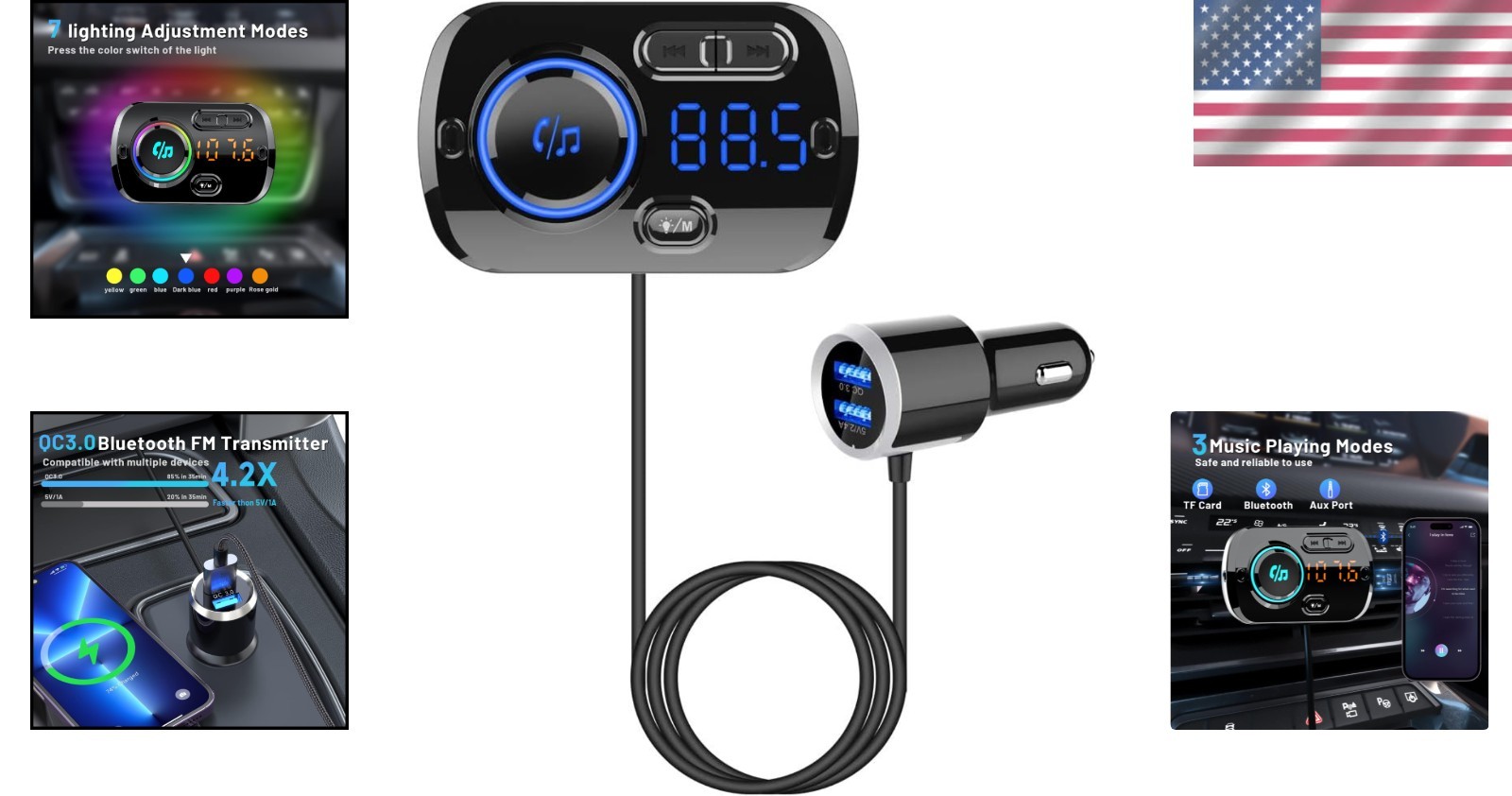 Multi-Function Bluetooth FM Transmitter for Cars - Hands-Free Music Streaming