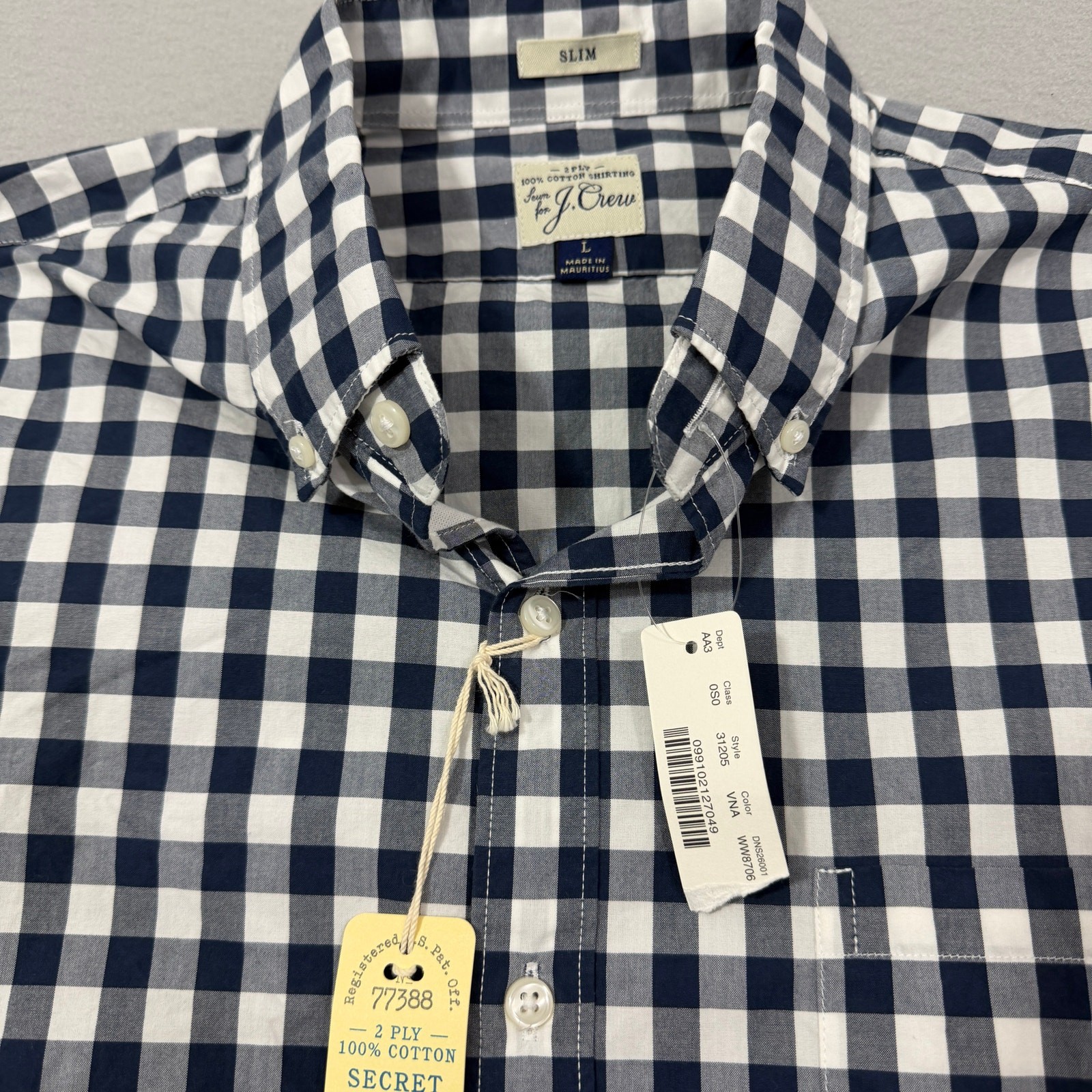 J Crew Slim Fit Button Down Shirt Men's Large Blue Gingham Plaid NEW NWT 31205