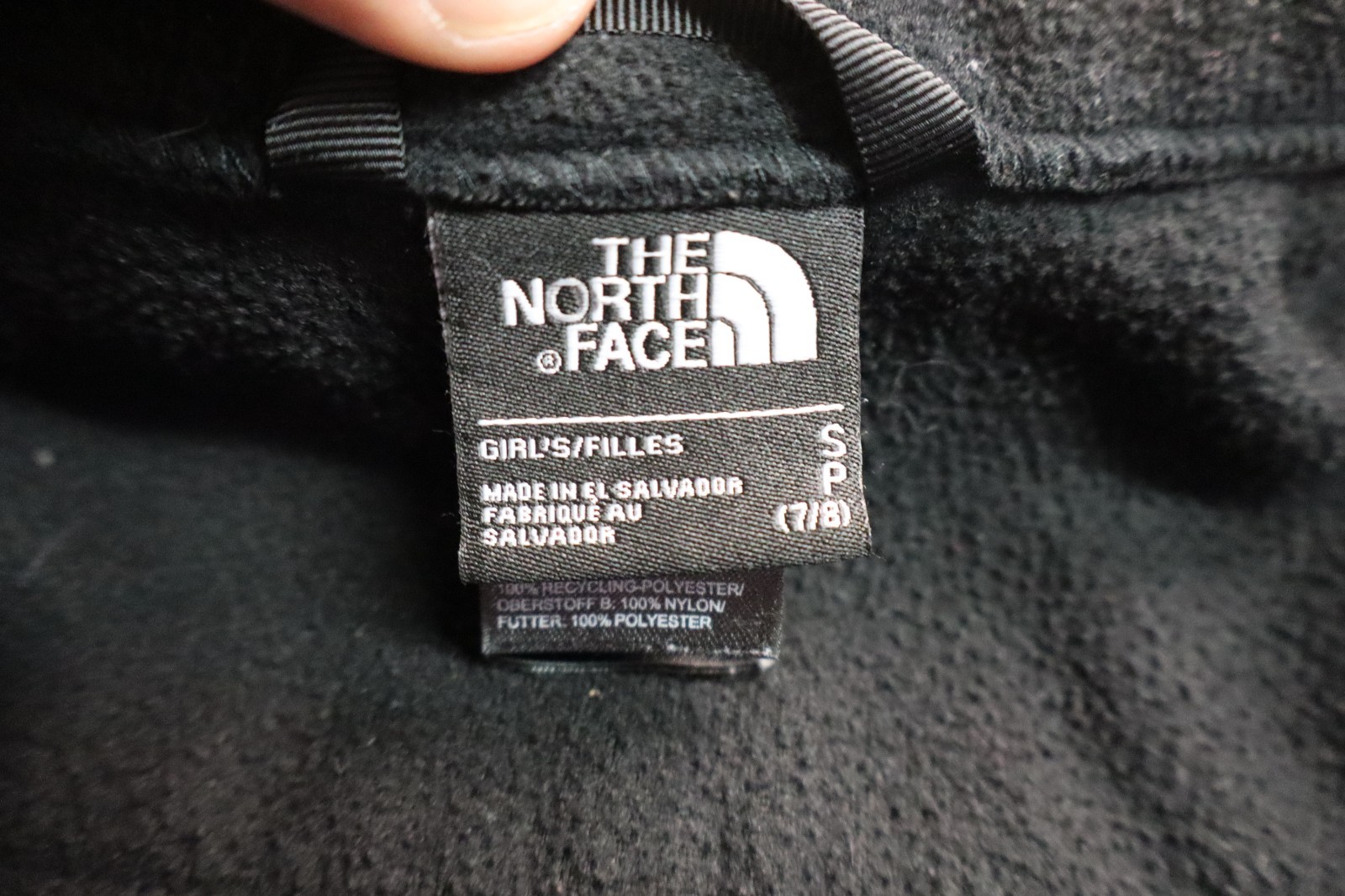 как выглядит North Face Girls S Size 7/8 Fleece Jacket Black Full Zipper Zip Up фото