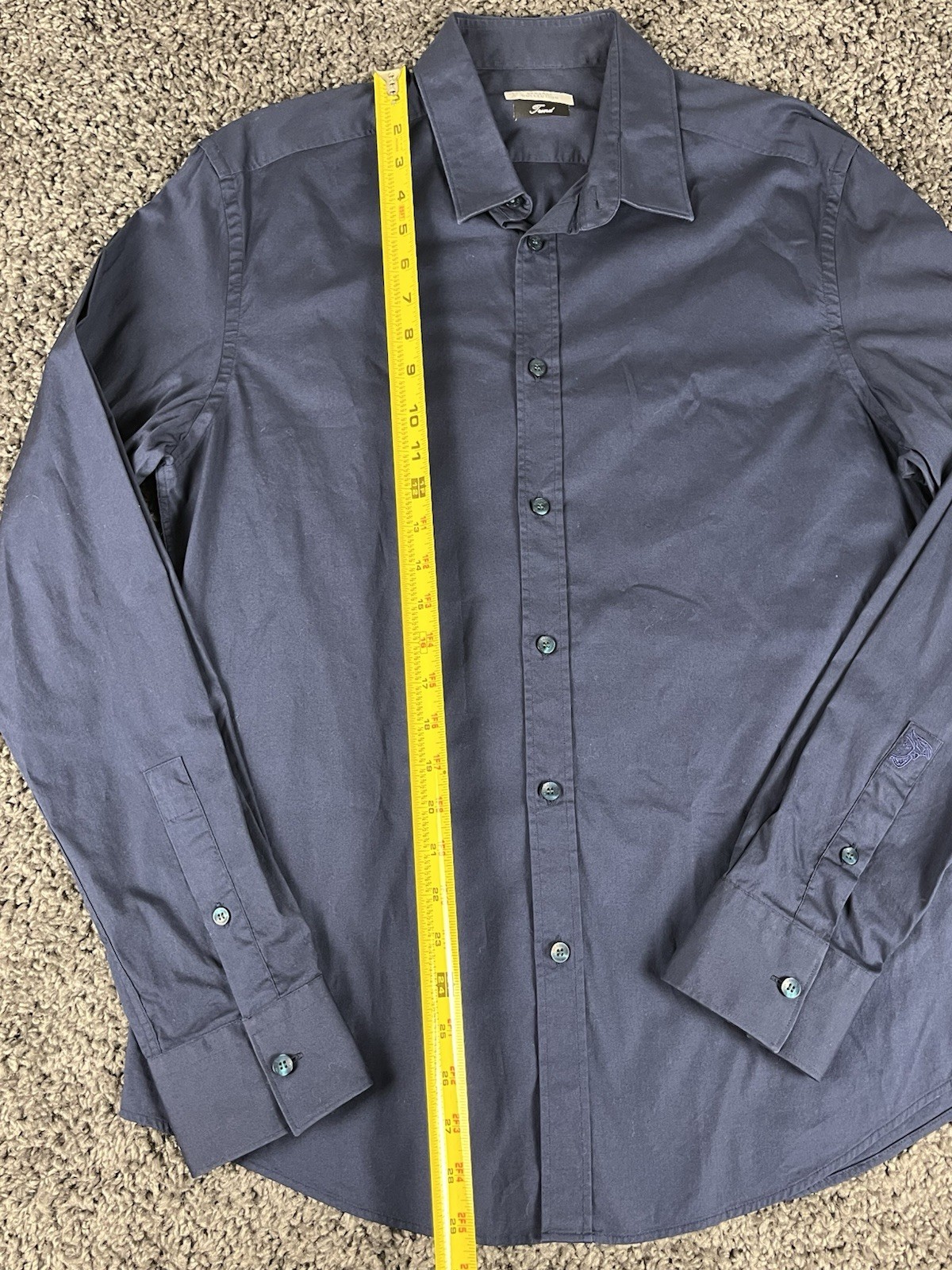 как выглядит Versace Collection Dress Shirt Mens 16.5 / 42 Blue Solid Long Sleeve Trend фото