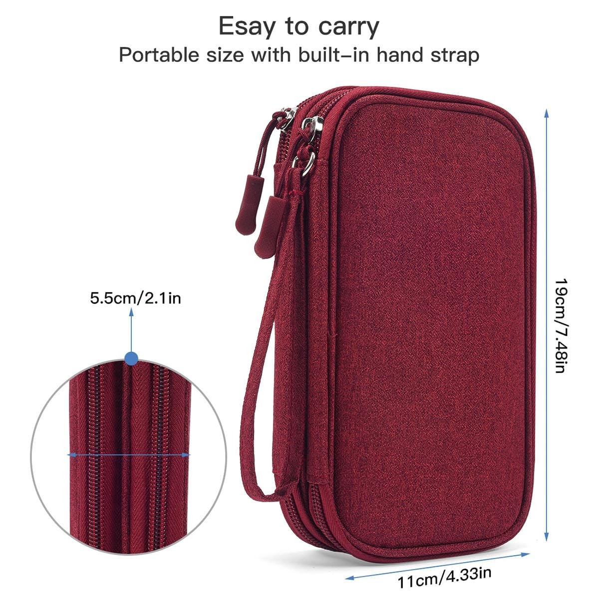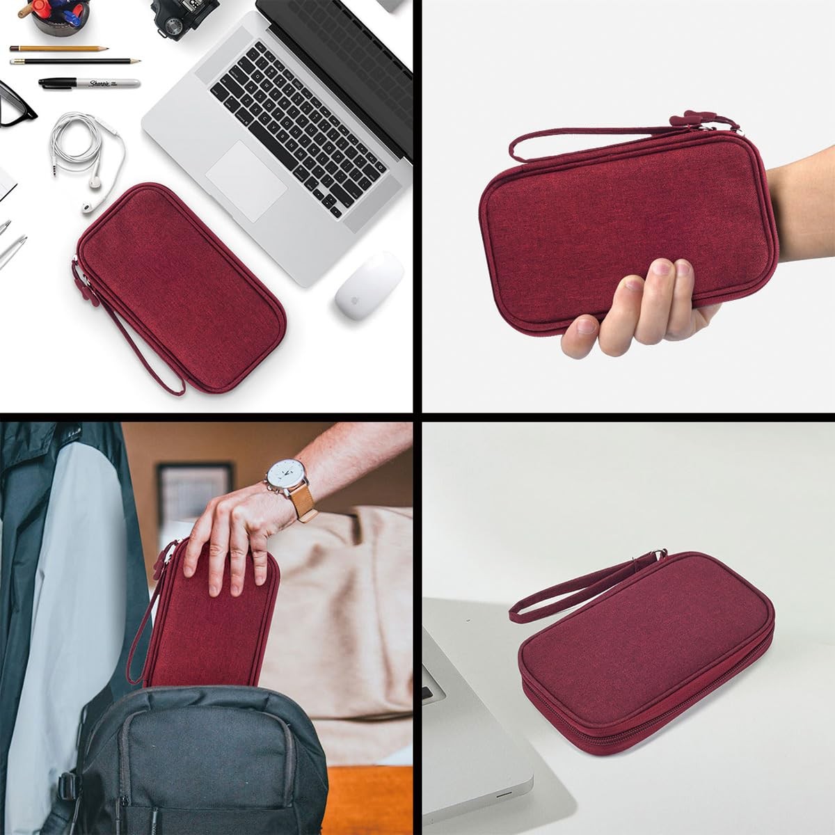 CAAORDKSO Electronic Cord Organizer Travel Case, Medium, Wine Red