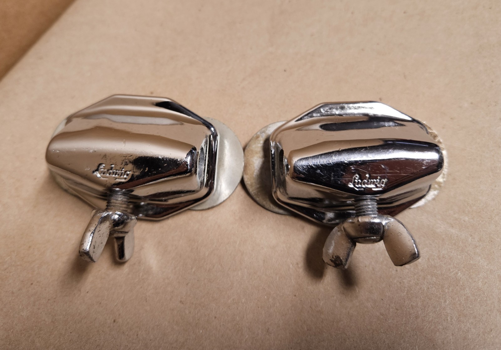 как выглядит VINTAGE LUDWIG BASS DRUM SPURS W/ MOUNTS EARLY 60