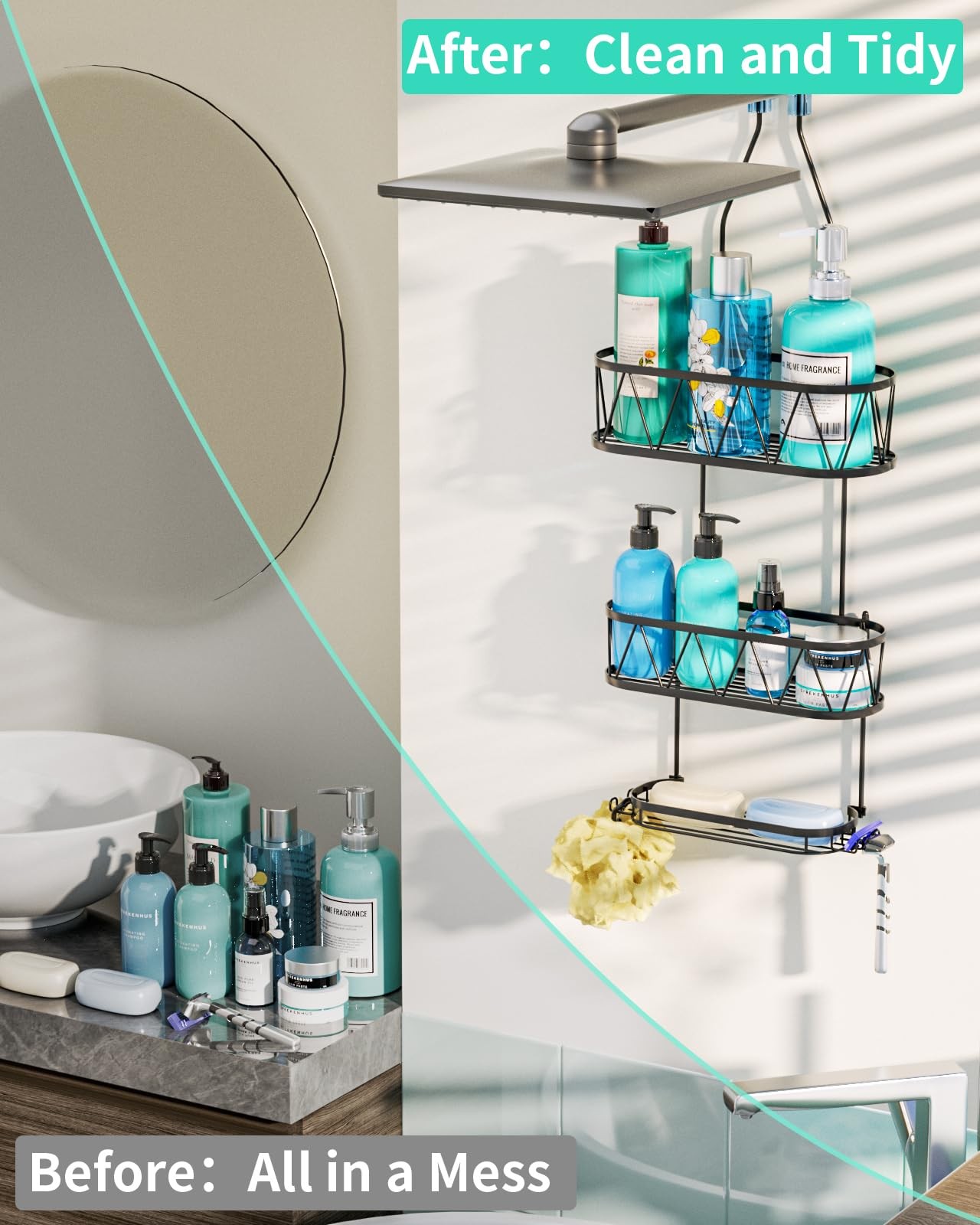 Hanging Shower Caddy, Rustproof Waterproof Shower Organizer with Soap Holde...