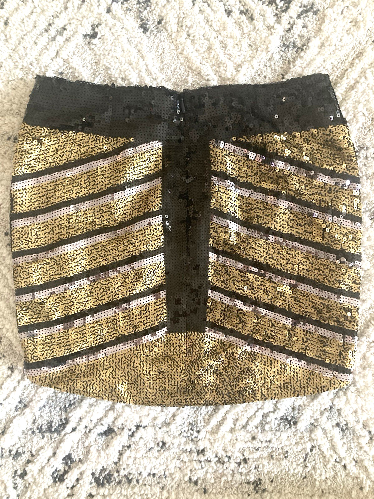 как выглядит NEW Bebe black gold silver sequin colorblock mini skirt S Small party фото