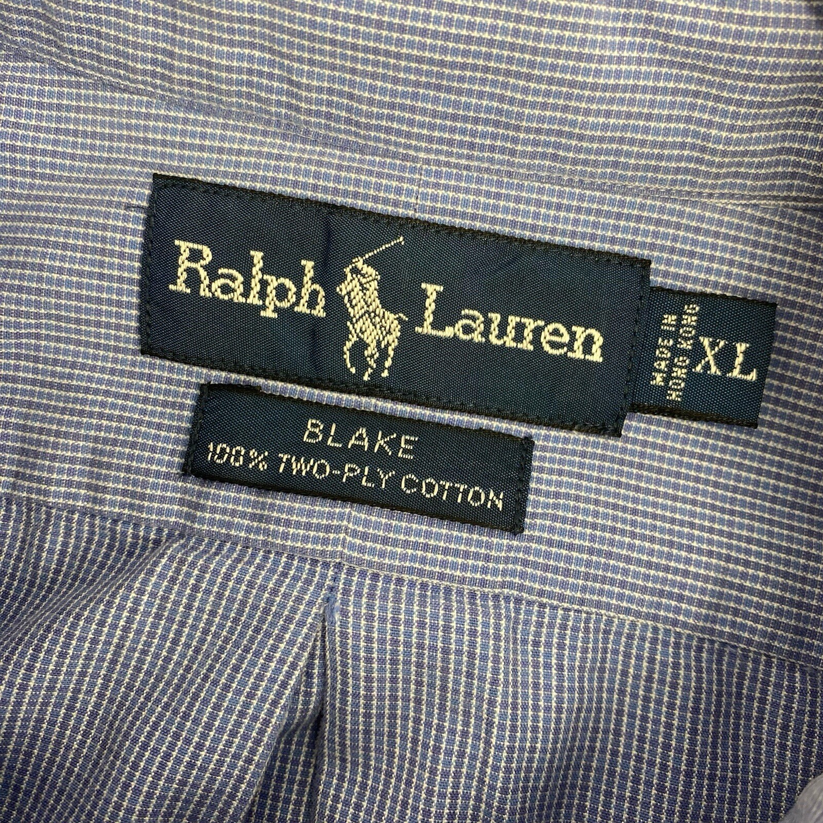 как выглядит Ralph Lauren Mens Blue Small Plaid Two-Ply Cotton Long Sleeve Button Down Shirt фото