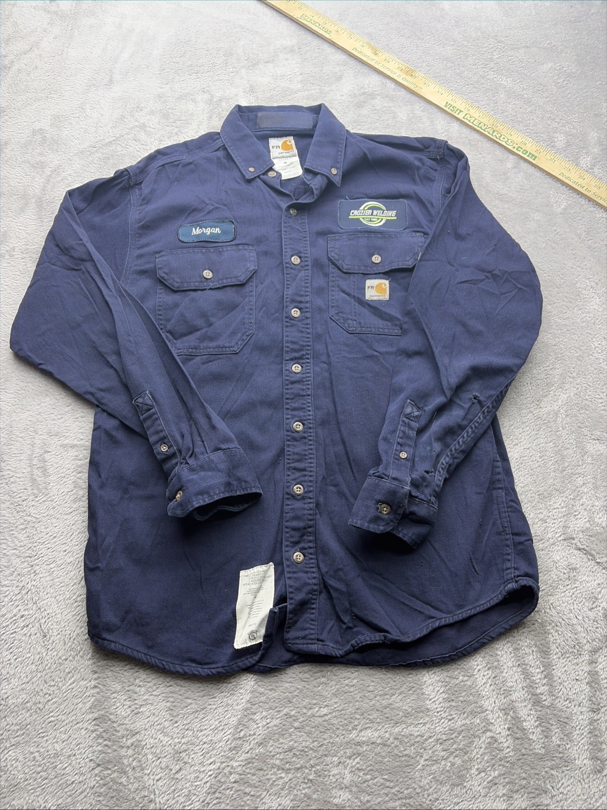 как выглядит Carhartt FR Shirt Mens M Medium Long Sleeve Blue Work Wear CAT 2 NFPA 2112 фото