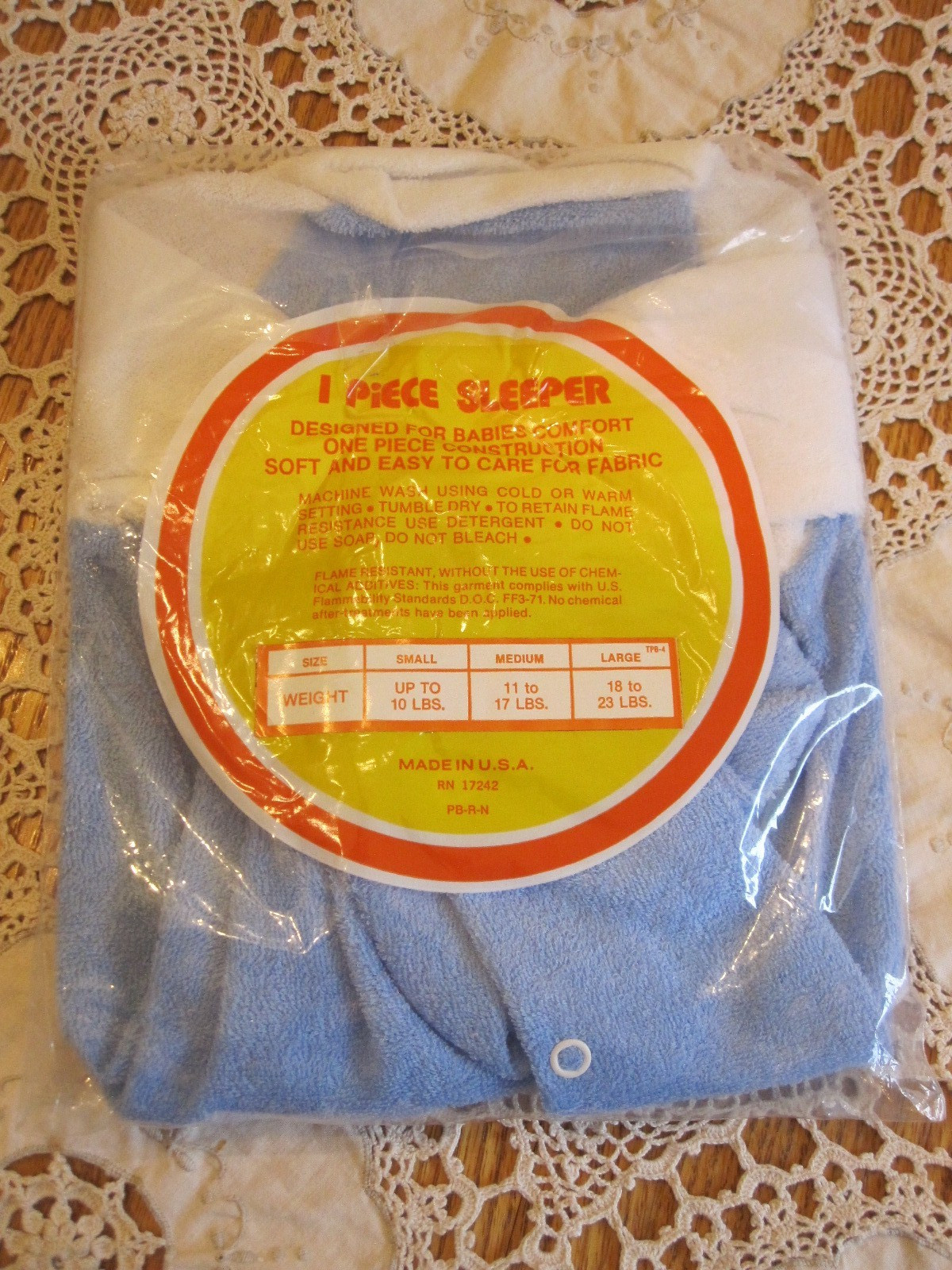 Vintage NOS LULLABY LAND One-Piece Sleeper Teddy Bear Baby Size L NEW SEALED