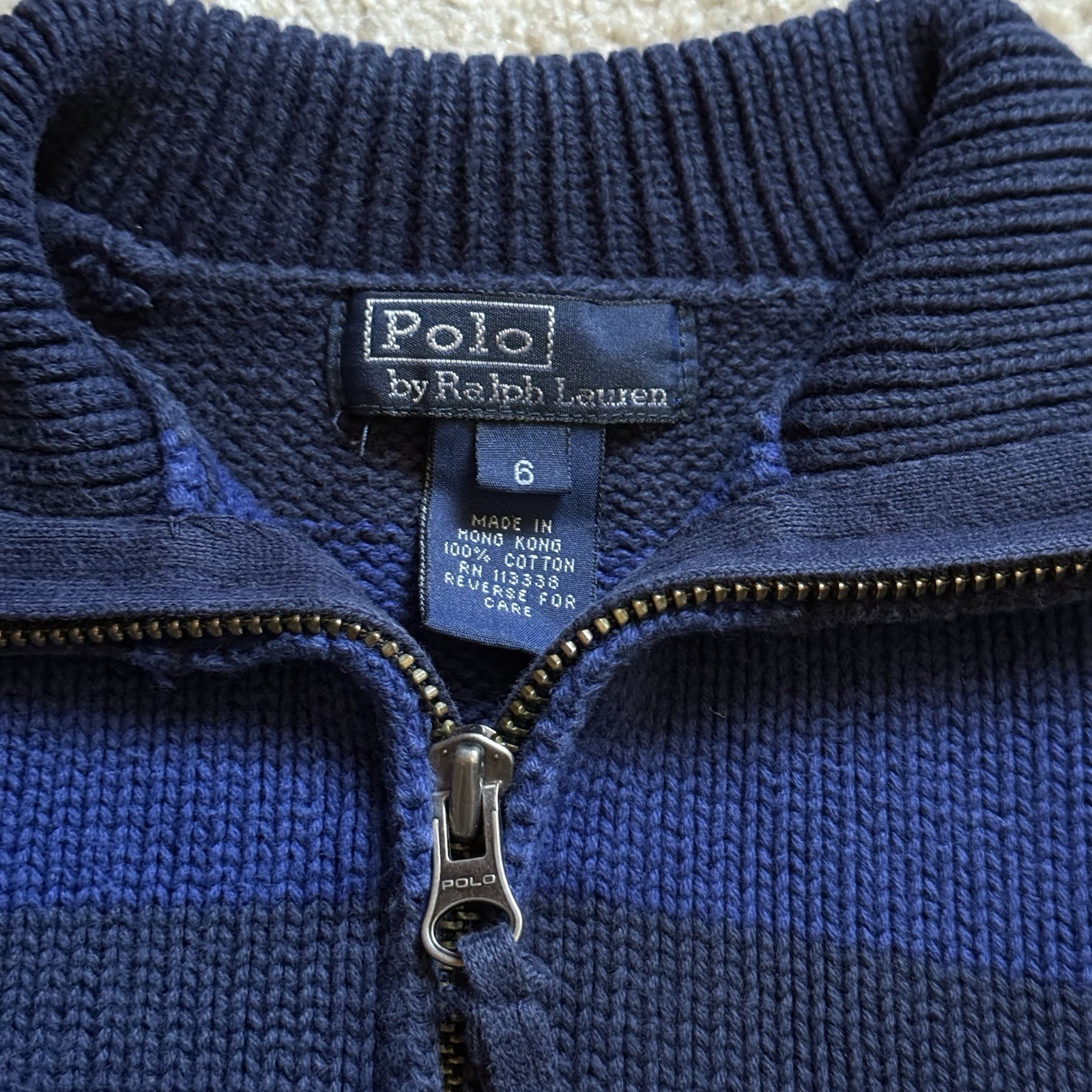 Polo Ralph Lauren Boys 1/4 Zip Striped Sweater Navy Blue Yellow Size 6 Knit