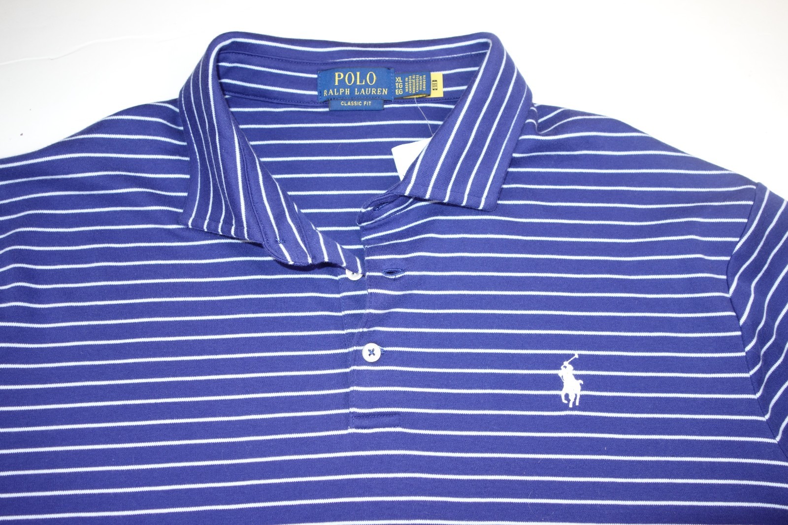 как выглядит POLO RALPH LAUREN Dark Navy Blue Stripe Classic Fit Polo Shirt NEW XL фото