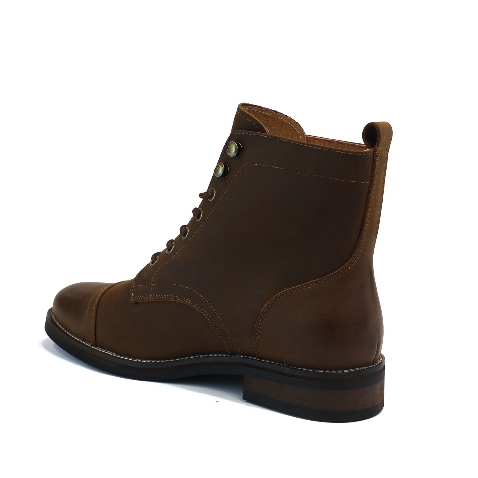 Mens Boots Genuine Brown Leather Cap Toe Lace Up Ankle Block Heel AZARMAN NEW