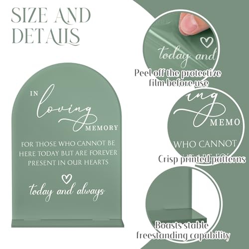 как выглядит in Loving Memory Wedding Sign with Stand 5" x 7" Acrylic Memorial Sage Green фото
