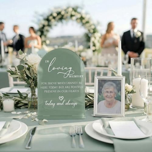 in Loving Memory Wedding Sign with Stand 5 x 7 Acrylic Memorial Sage Green