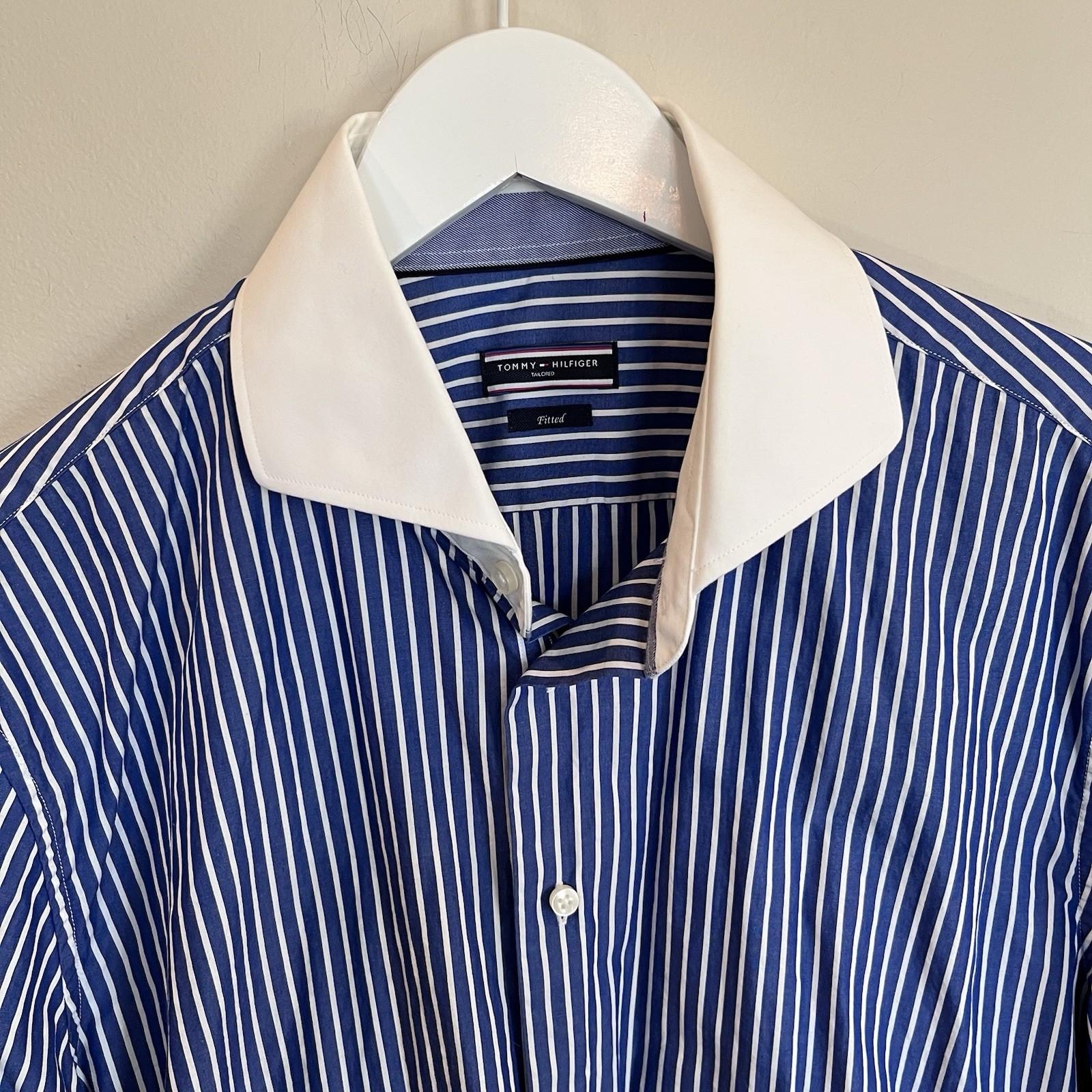как выглядит Tommy Hilfiger Men s Button Down Shirt Stripes Fitted 43/17 Xl фото