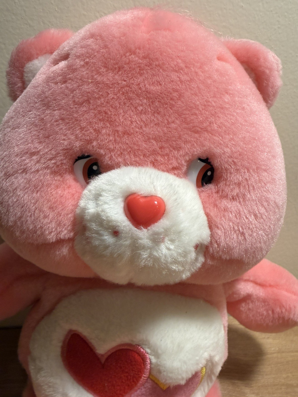 2002 Care Bears Love-a-Lot Bear Pink Hearts 20th Anniversary 13 Plush Vintage