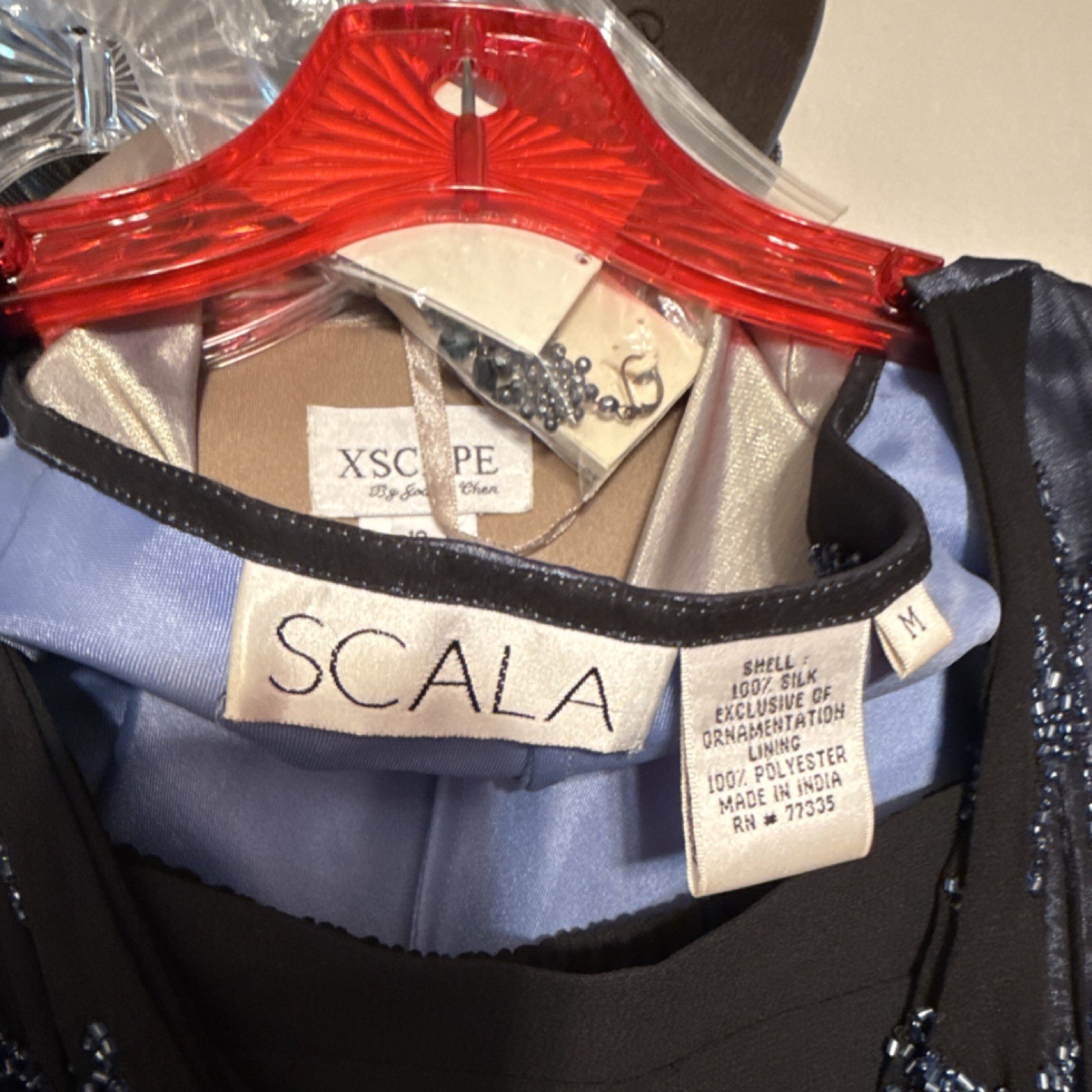 как выглядит Scala Embellished Formal Dress Black Blue Silk Polyester Size M фото