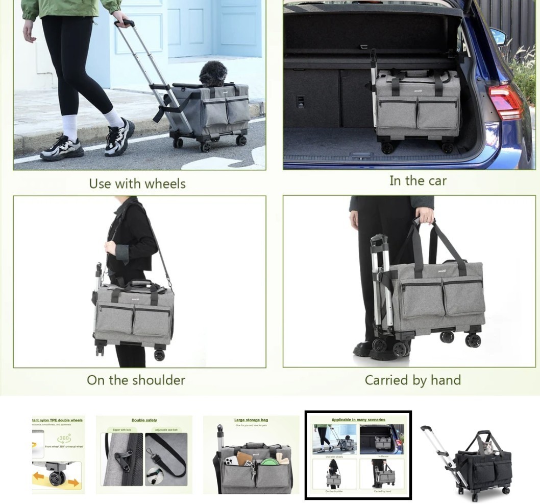 как выглядит NEW Pecute Cat Carrier w/Wheels Steel Wire Frame Stable Small Pet Trolley SEALED фото