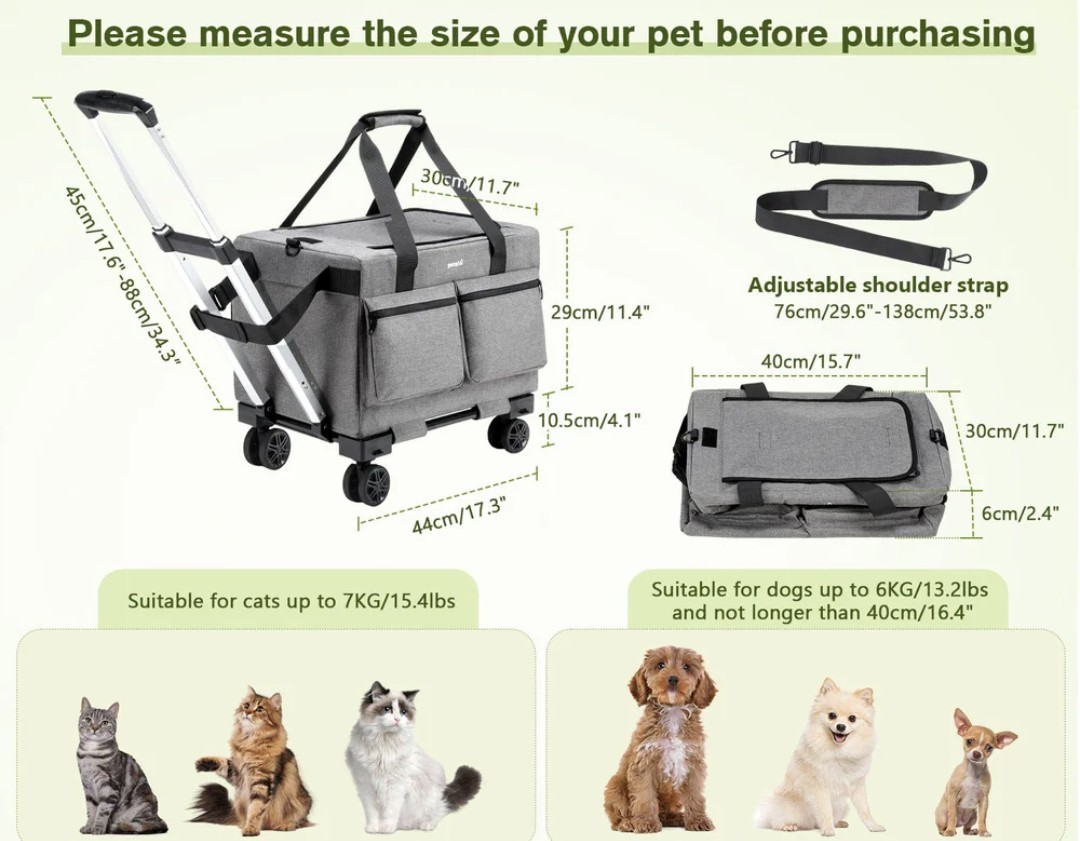 NEW Pecute Cat Carrier w/Wheels Steel Wire Frame Stable Small Pet Trolley SEALED