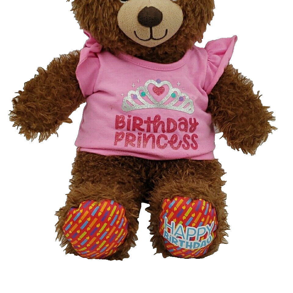 Build A Bear Happy Birthday Bear Pink Princess Shirt Sewn Eyes Plush Teddy Toy