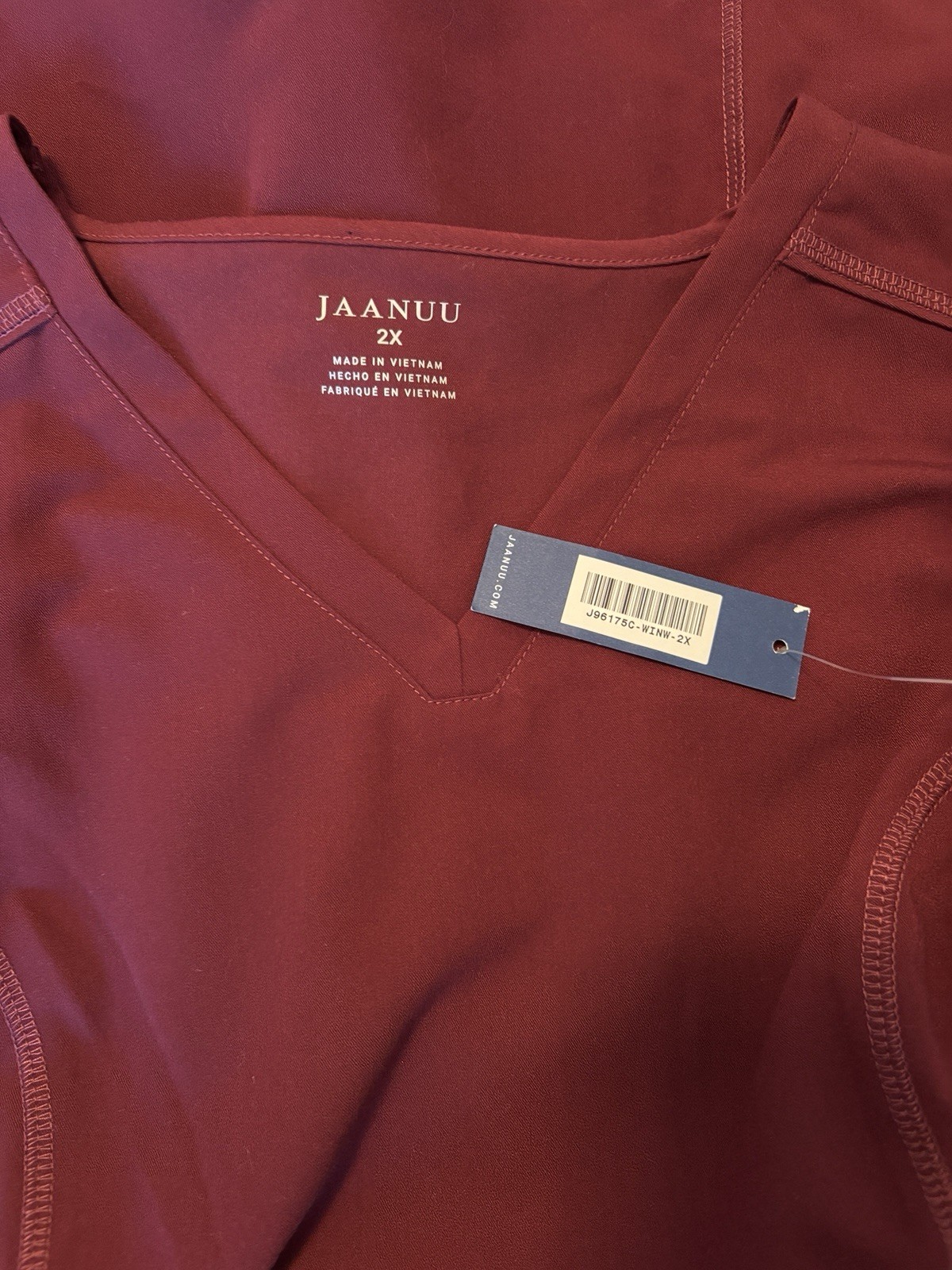 Jaanuu Women's V-Neck Scrub Top in Wine. Size 2X Style J96175C, Pockets - NWT