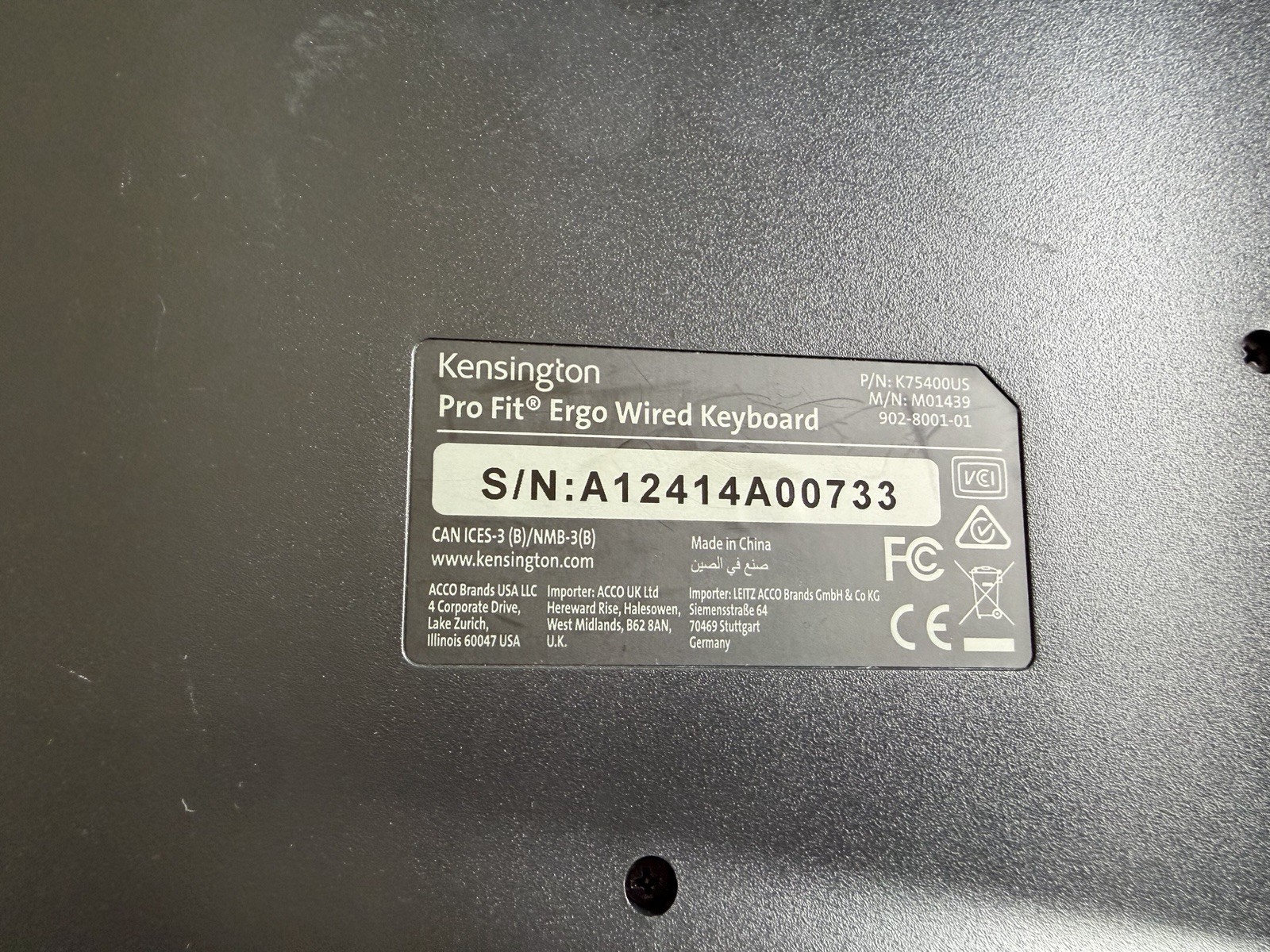 Kensington Pro Fit Ergonomic Wired Keyboard Black K75400US Used Tested