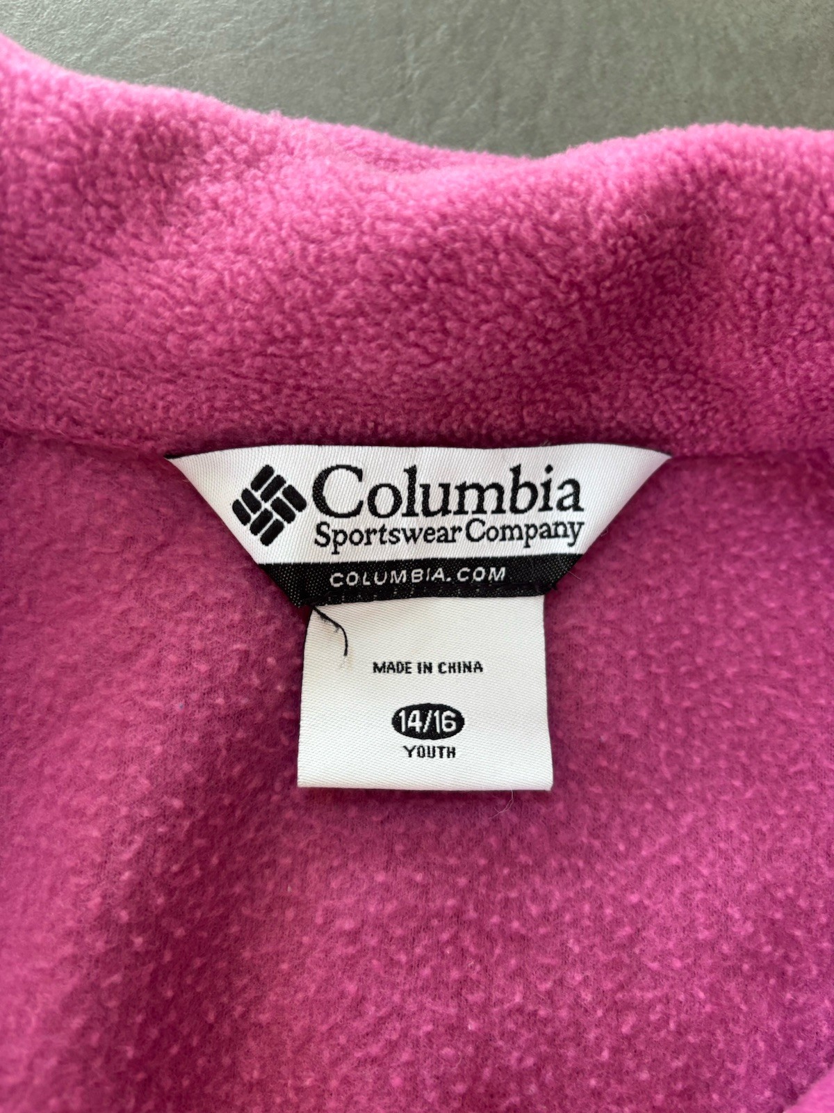 как выглядит Columbia Fleece Jacket Girls Youth L 14-16 Full Zip Dark Pink Nice фото