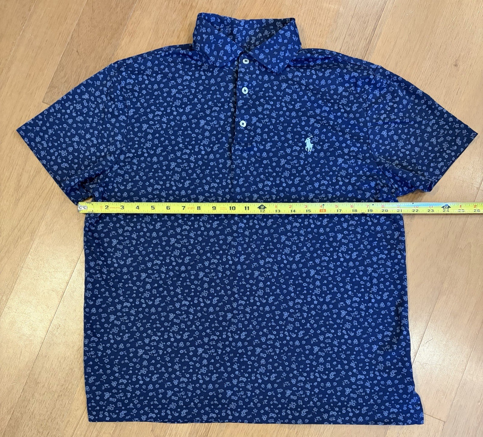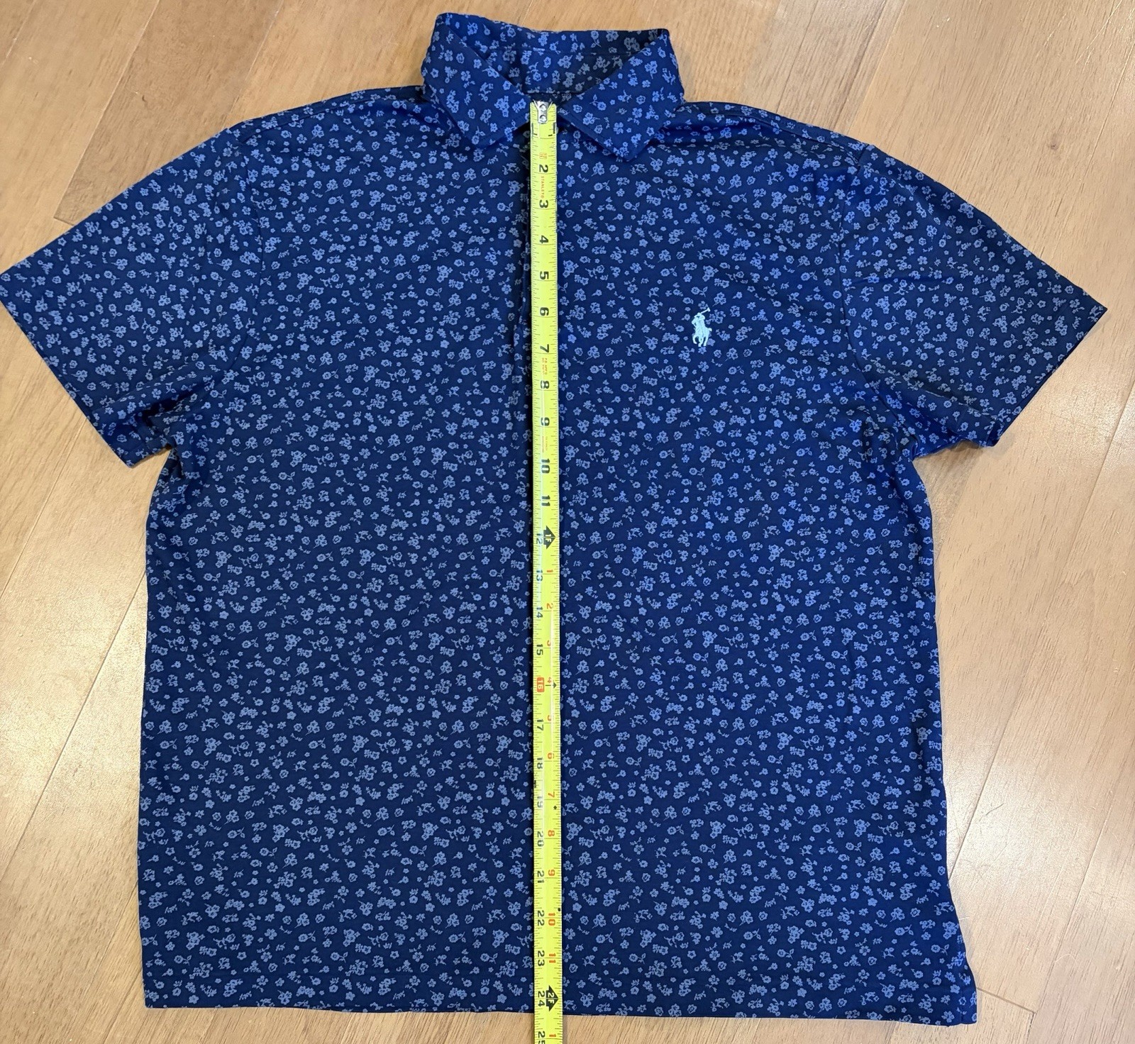 Ralph Lauren Polo Shirt Large Custom Slim Fit Blue Floral Soft Knit Premium EUC