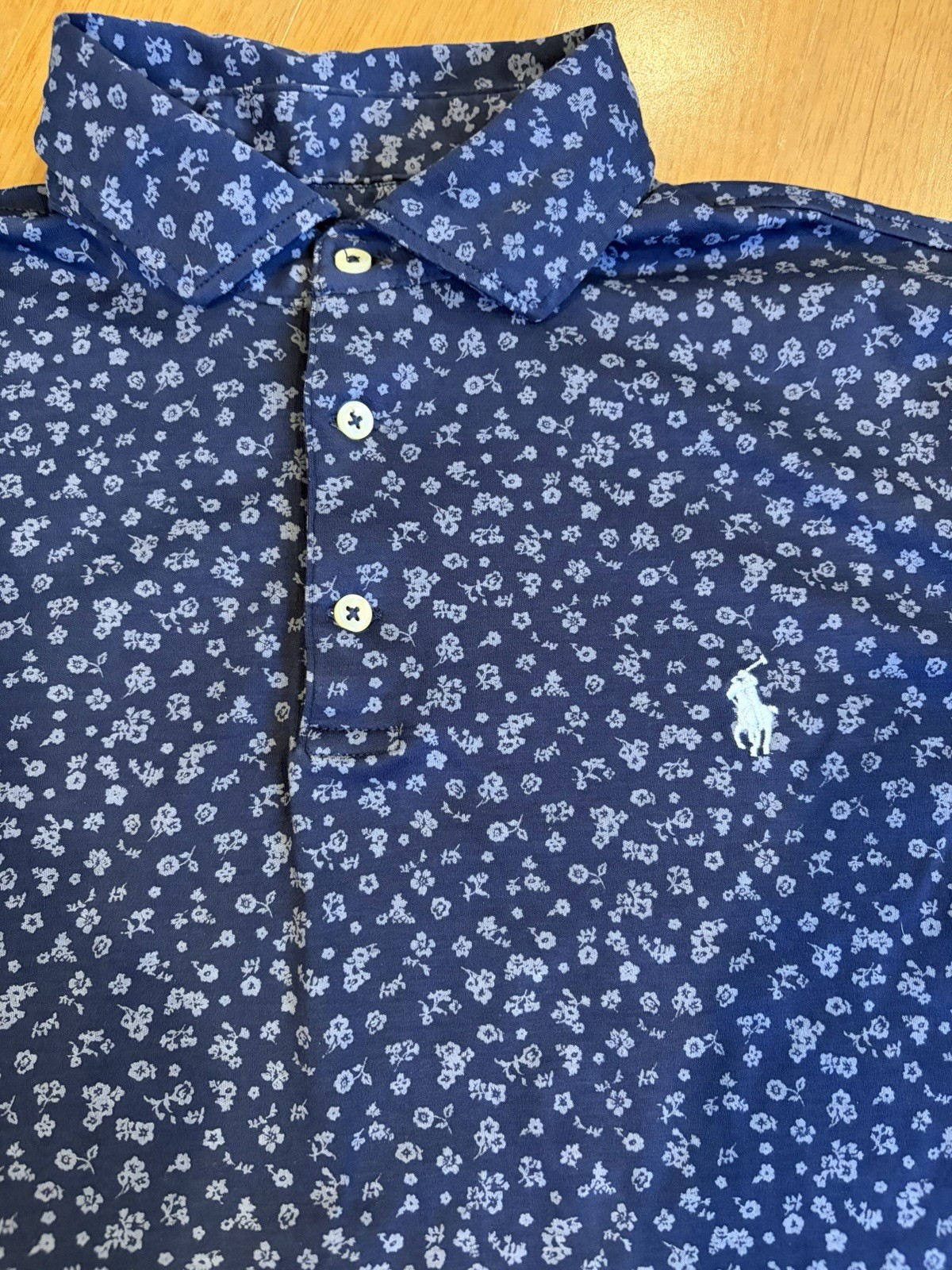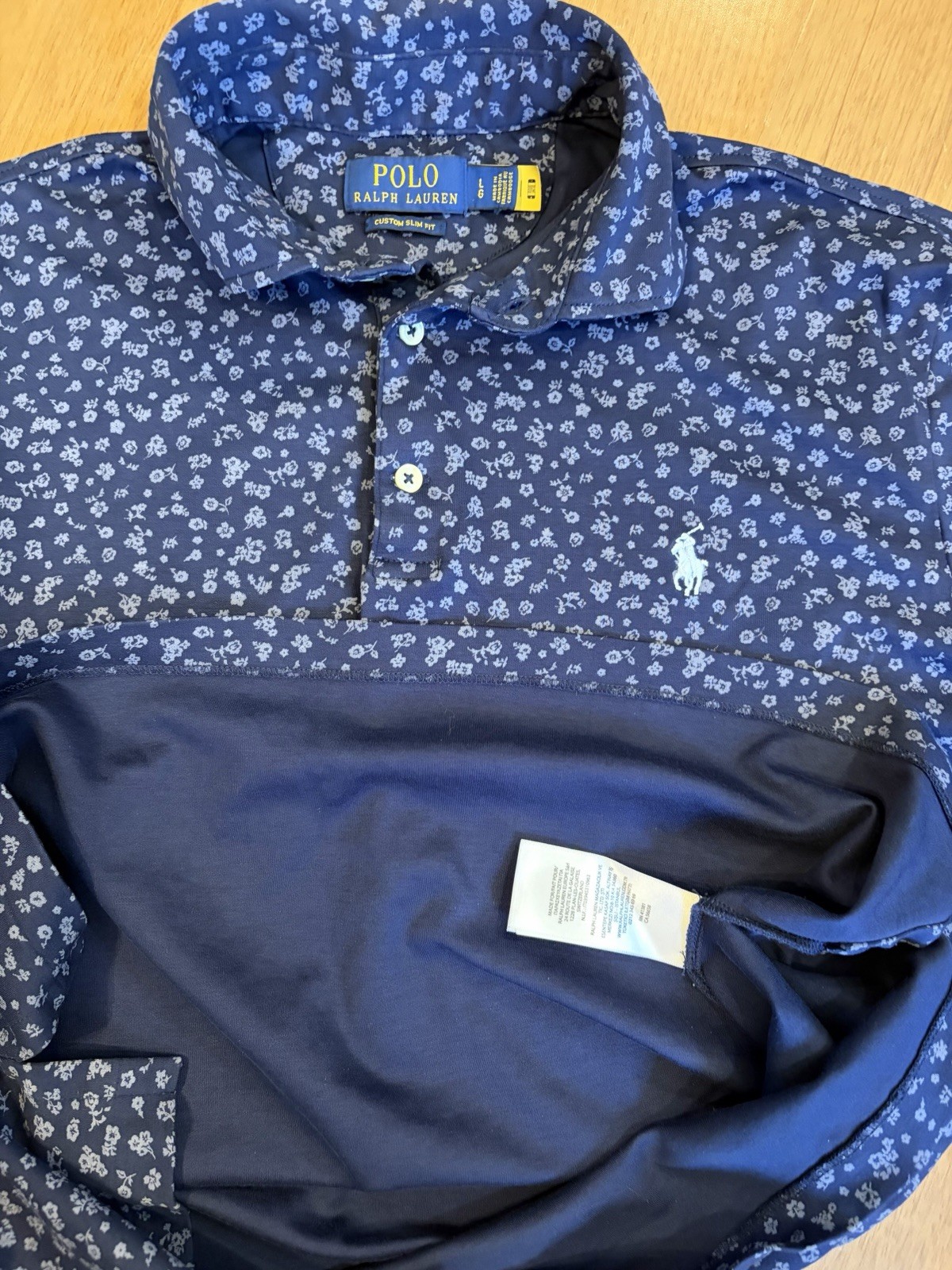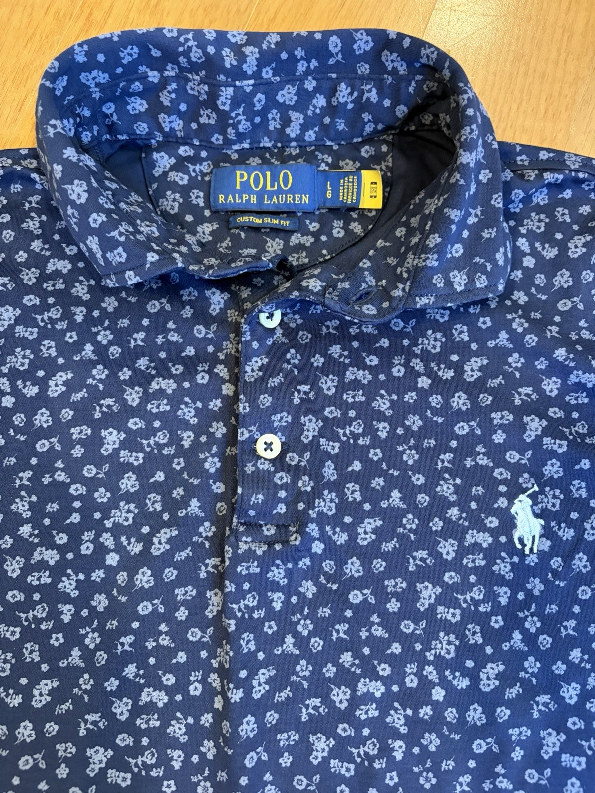 как выглядит Ralph Lauren Polo Shirt Large Custom Slim Fit Blue Floral Soft Knit Premium EUC фото