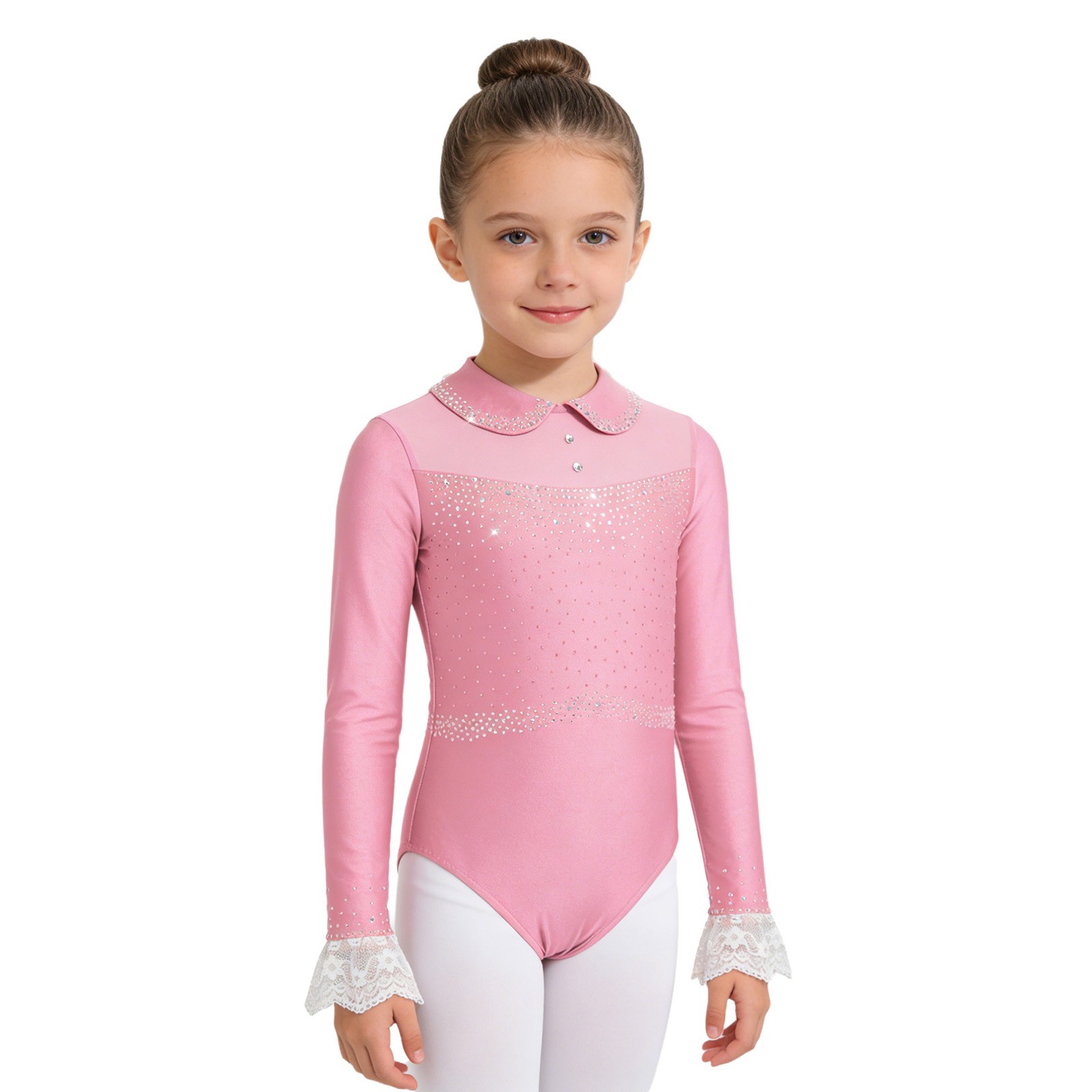 как выглядит Girls Jumpsuit Gymnastics Bodysuit Cha-Cha Unitard Lace Cuff Ballet Festival фото