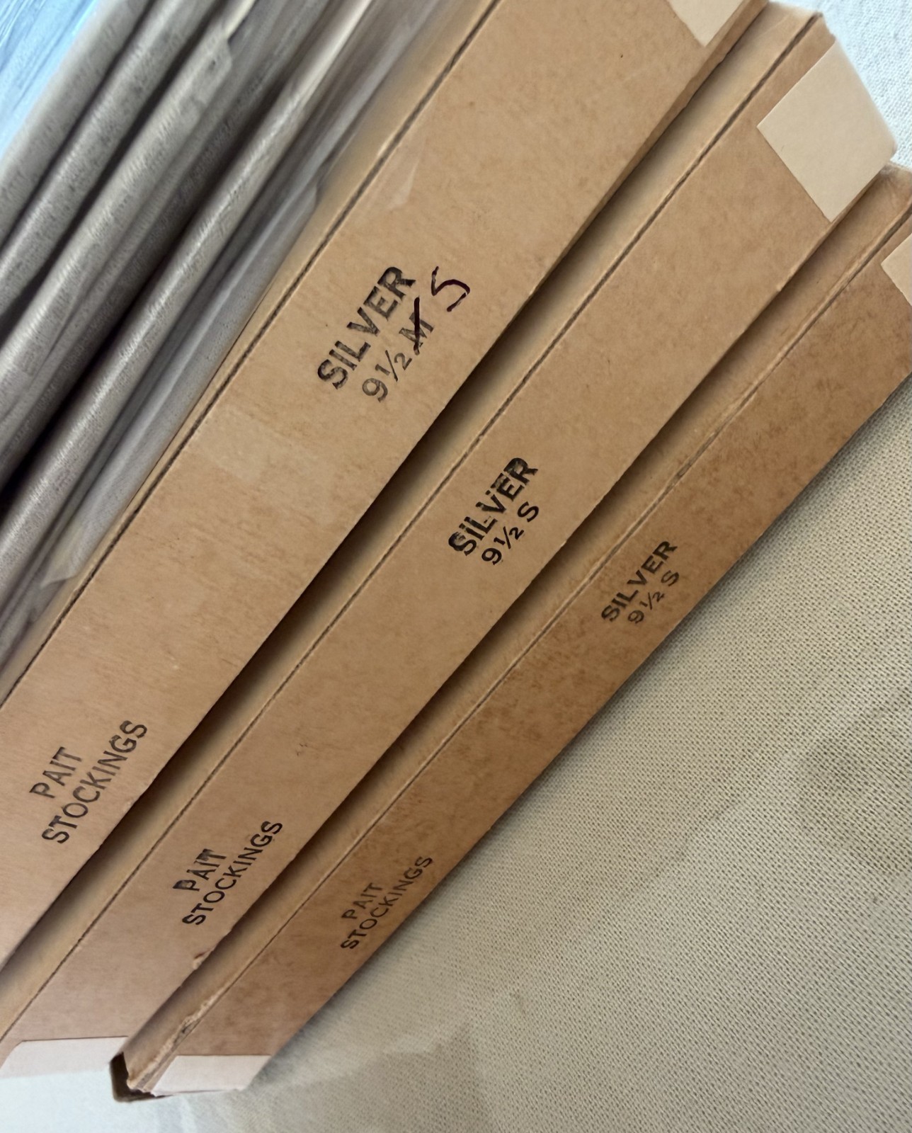 Lot of 29 Vintage Nylon Silver Boxed Stockings Size 9.5S NOS