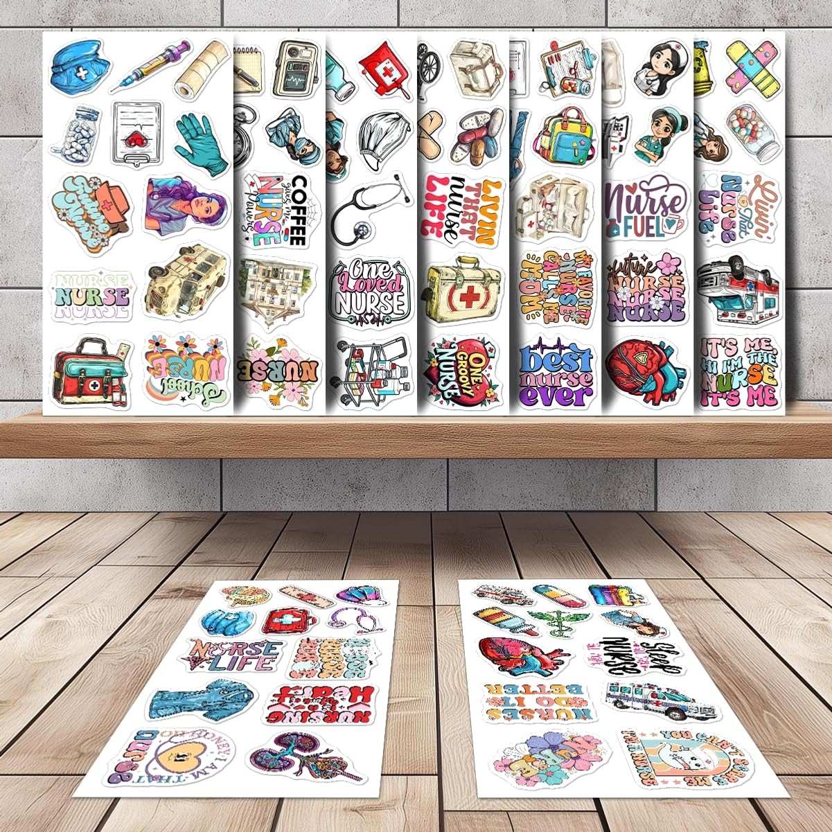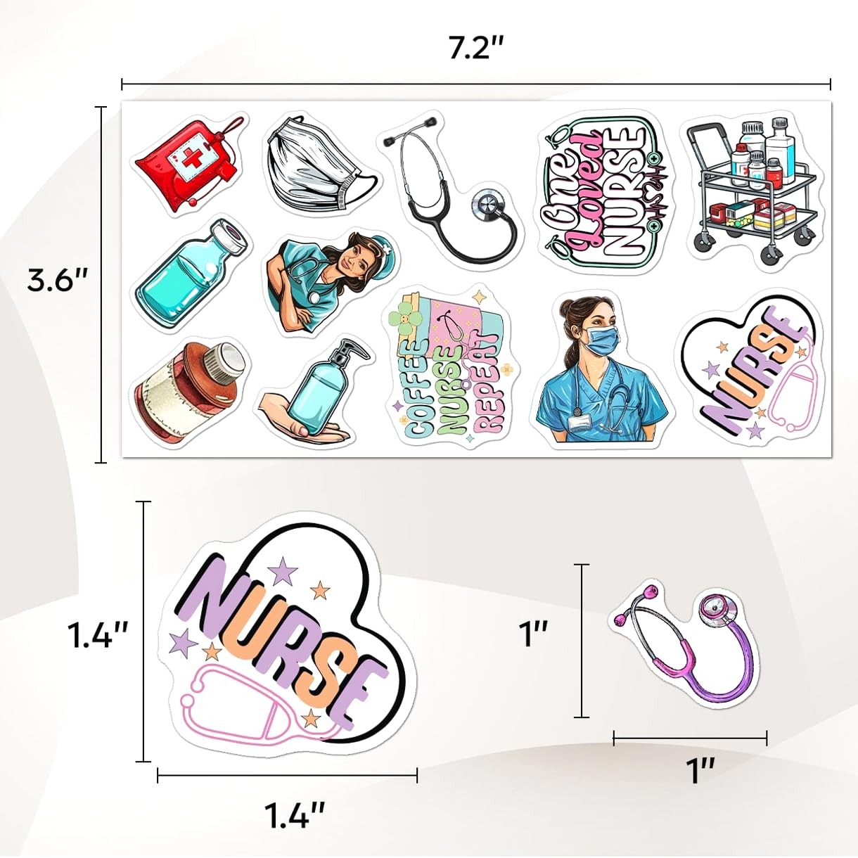 108-PC Nurse Stickers Pack, Medical Healthcare Waterproof Vinyl Decals