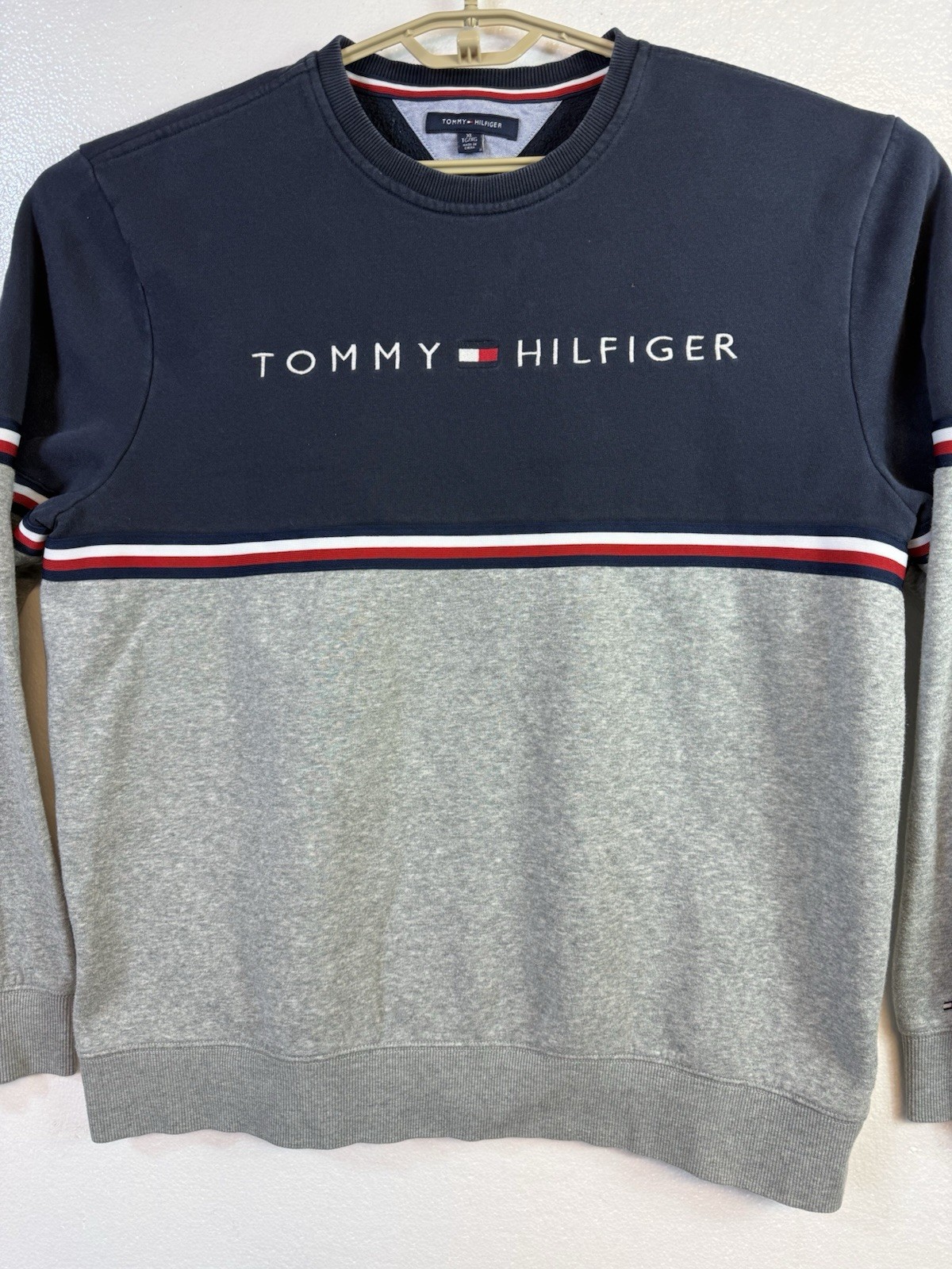 как выглядит Vtg Tommy Hilfiger Spell Out Sweatshirt Mens Sz XL Crew neck Logo Gray Blue фото