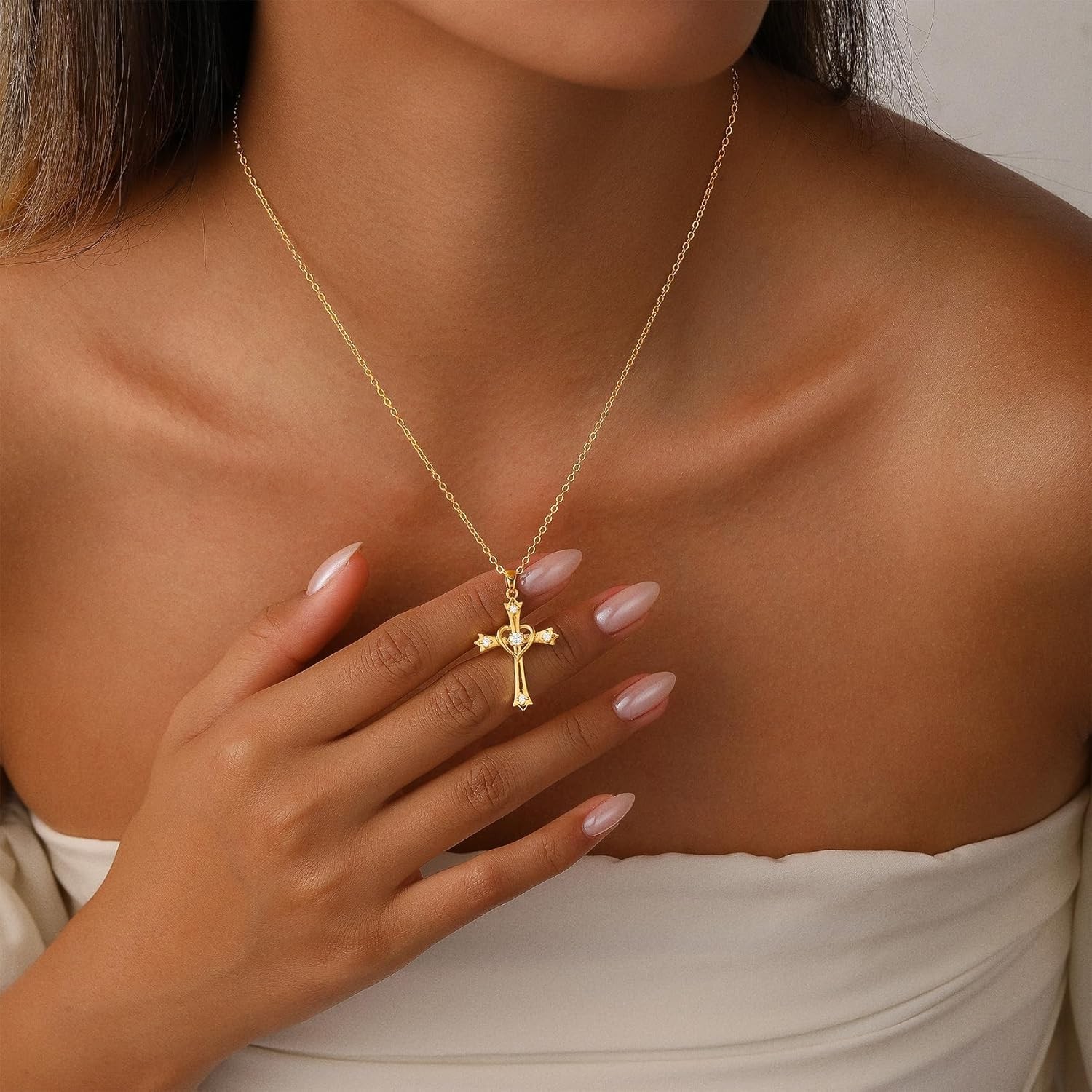 Gold Cross Necklace for Women Dainty 14K Gold Plated Diamond Cross Pendant Neckl