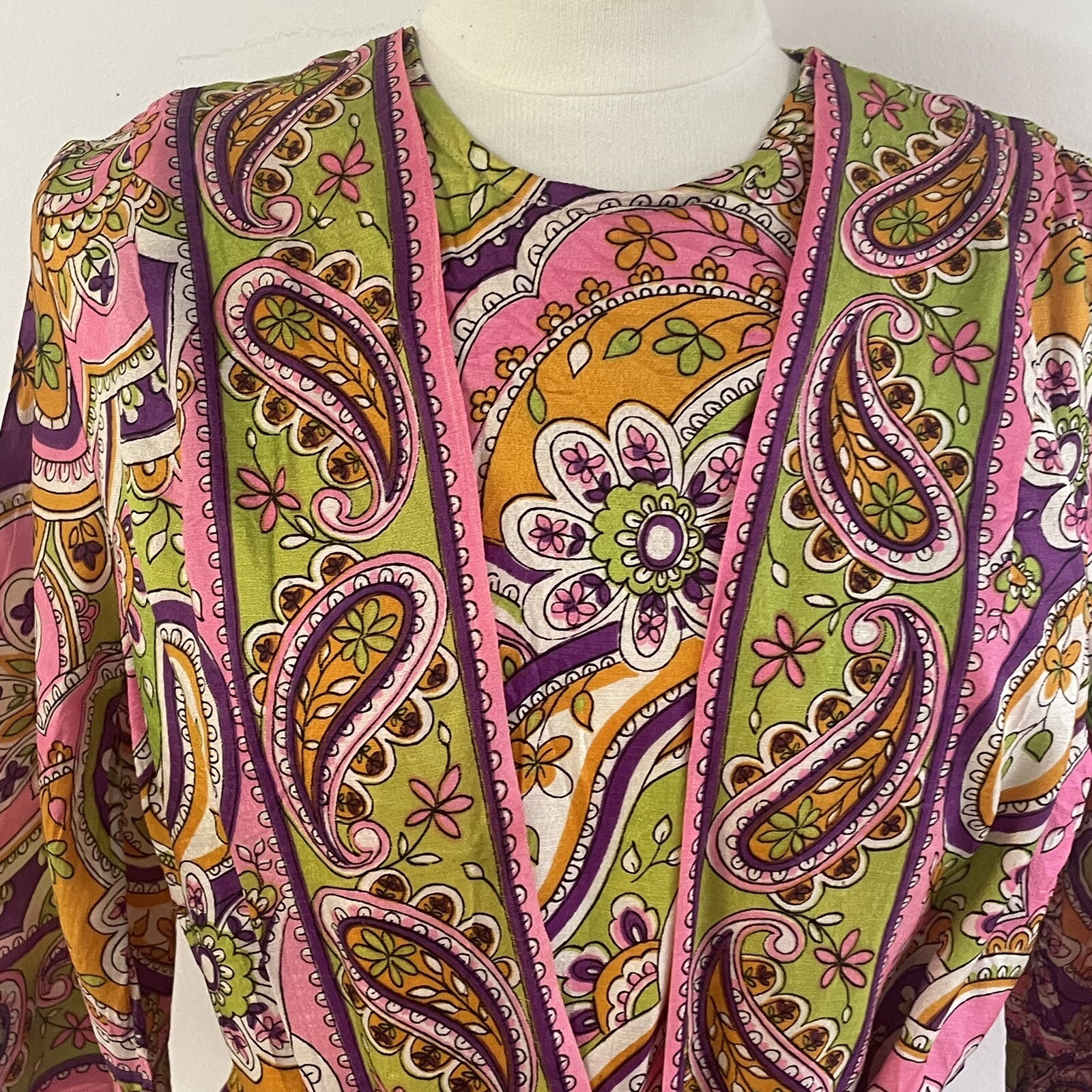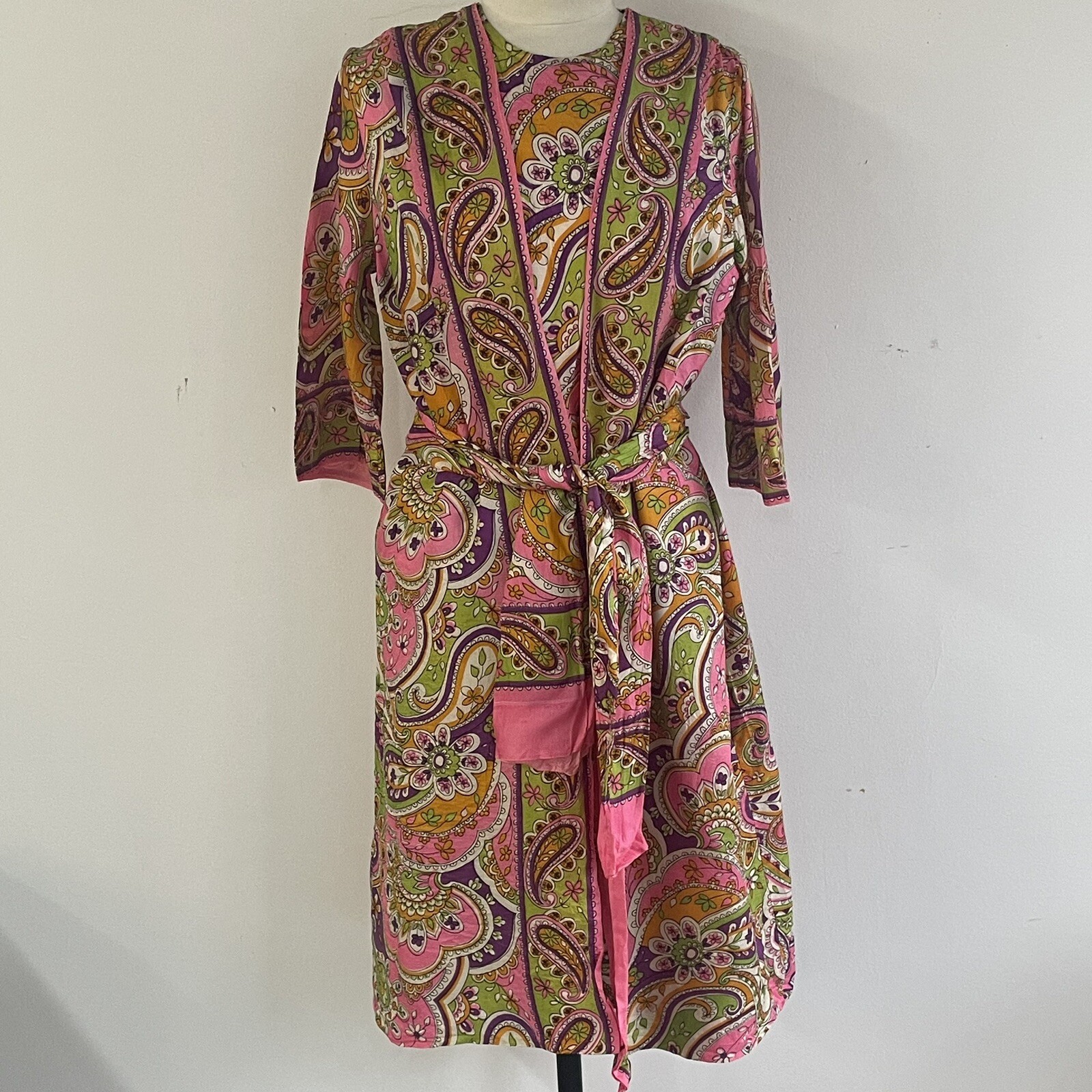 как выглядит Vtg 60s DIANA DEAN JULIUS LONSCHEIN Silk Paisley Wrap Dress Hostess Caftan Med фото