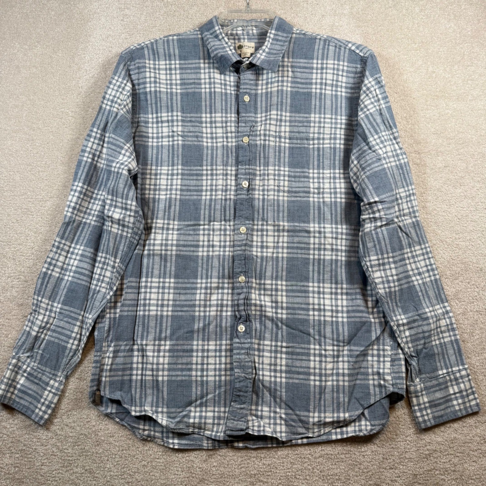 J.Crew Button Front Shirt Mens Large Blue Plaid Long Sleeve Cotton