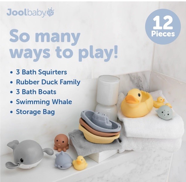 My First Bathtime Gift Set - 12-Piece Bath Toys with Storage Bag by Jool Baby