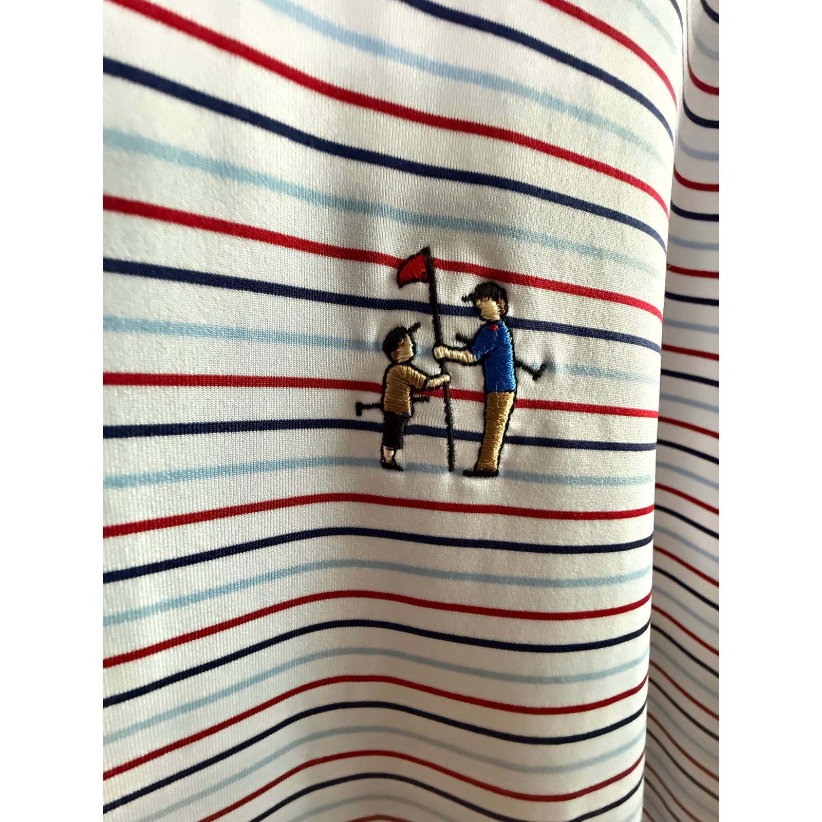 Greg Norman Play Dry Golf Polo Mens XL White Striped Father Son Logo EUC