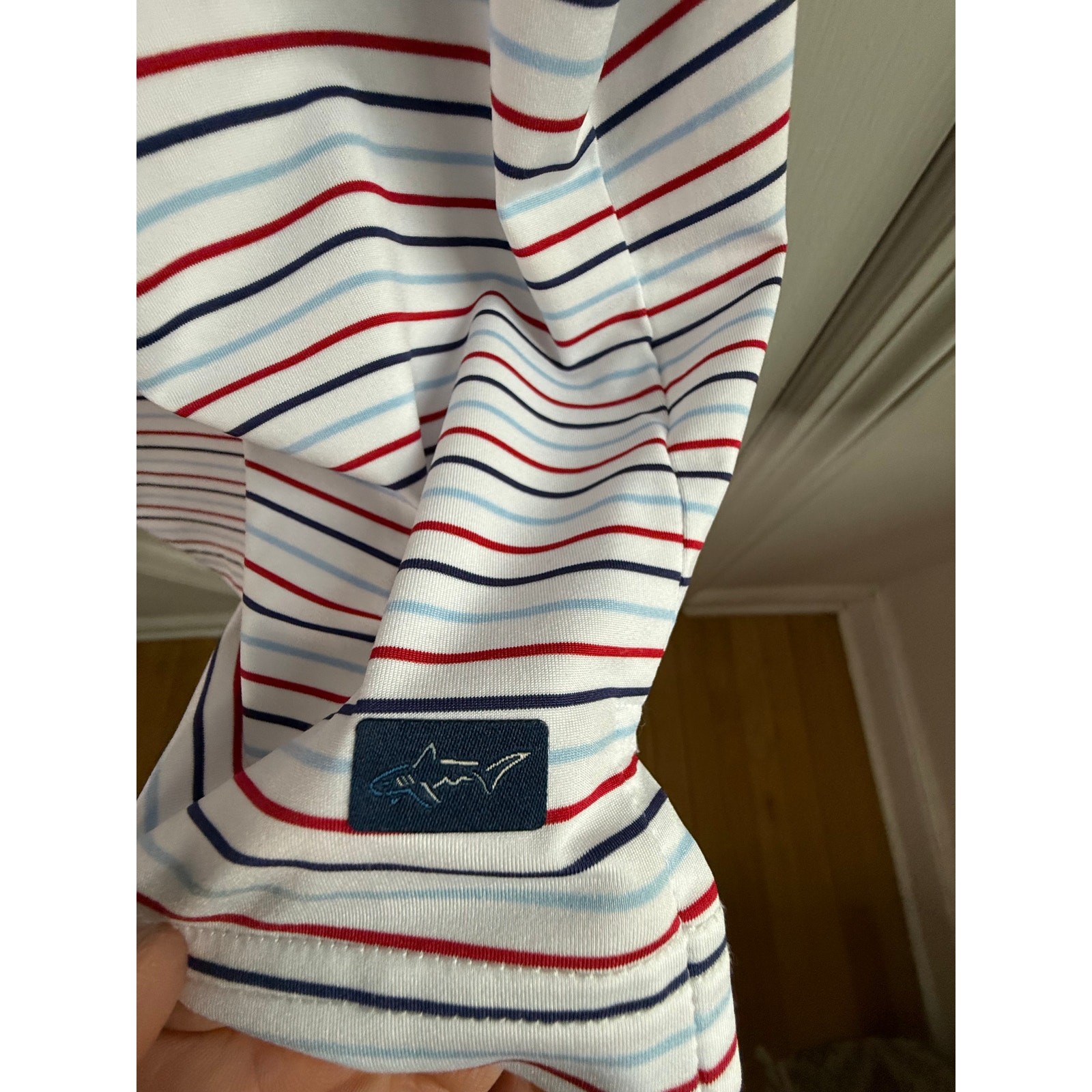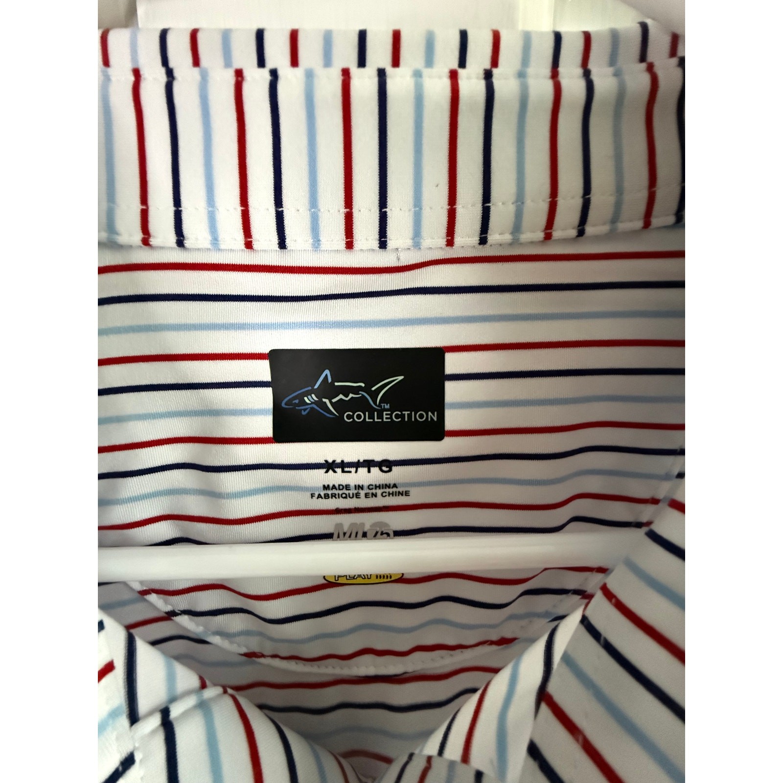 как выглядит Greg Norman Play Dry Golf Polo Mens XL White Striped Father Son Logo EUC фото