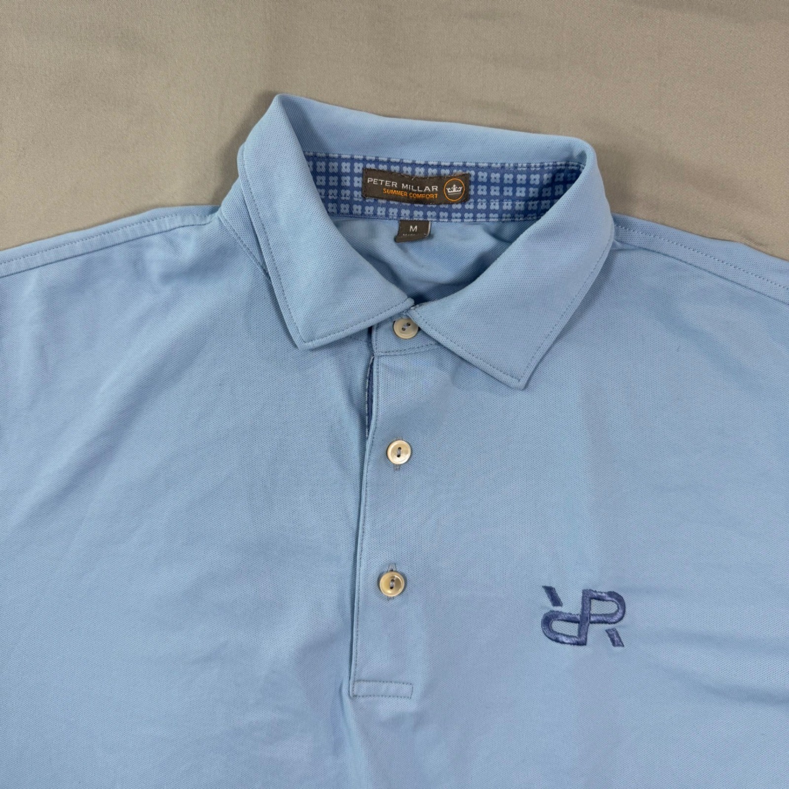 как выглядит Peter Millar Summer Comfort Mens M Blue Performance Polo Shirt Golf Athleisure фото