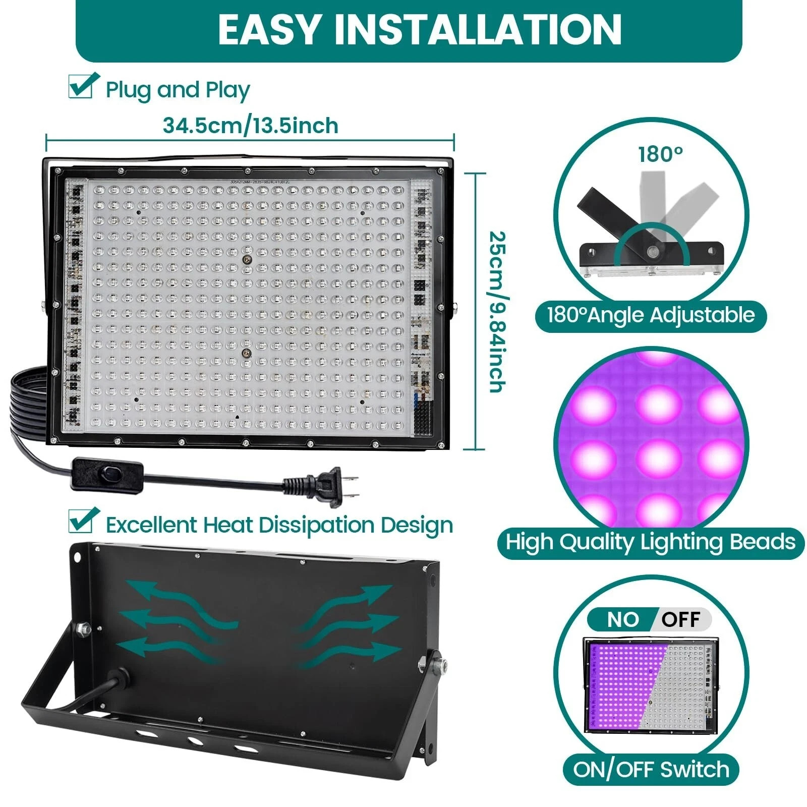 как выглядит Waygor 300W LED Black Light 2 Pack UV Flood Lights 395nm Glow Party Outdoor IP65 фото
