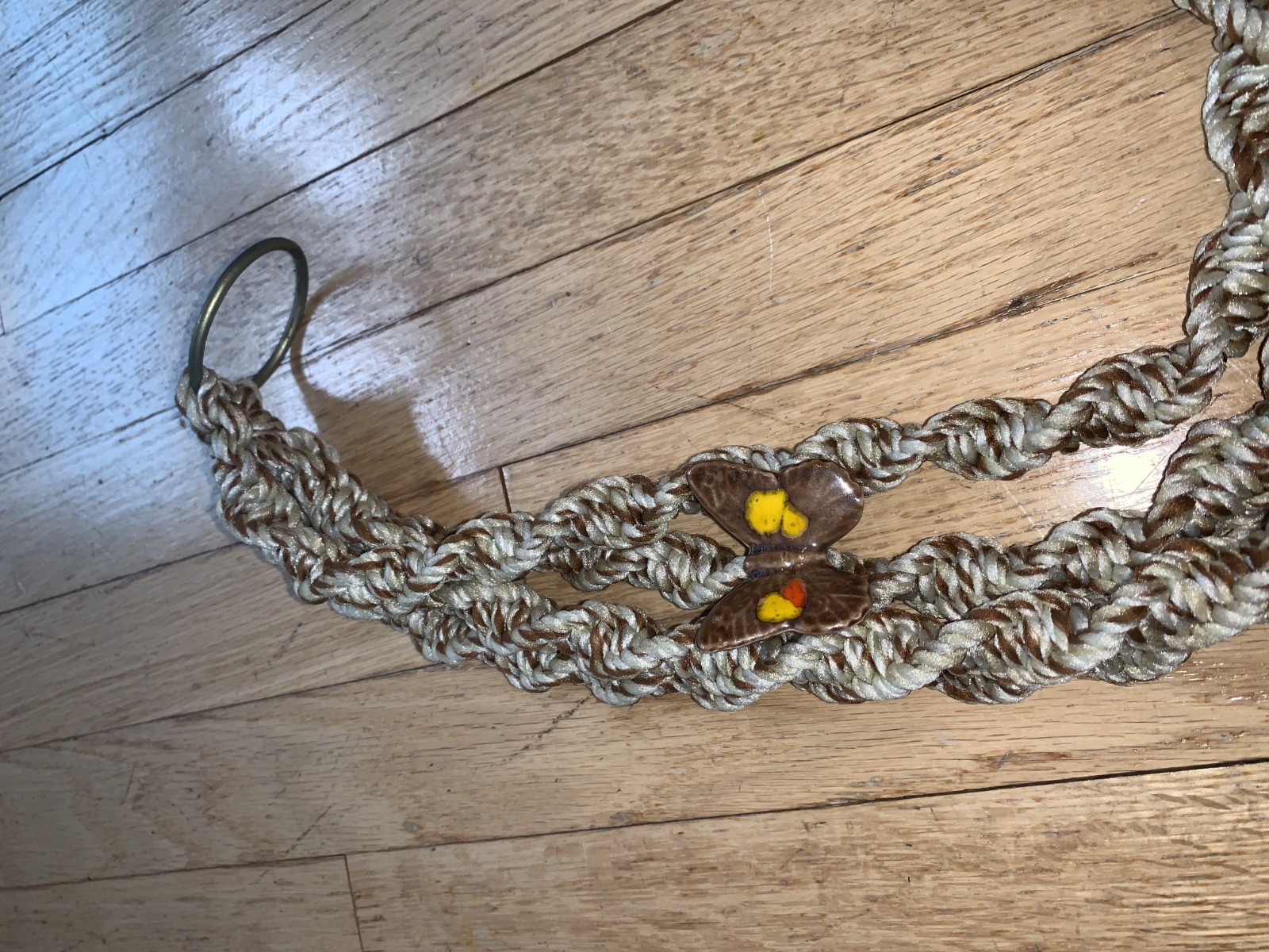 как выглядит Vintage Brown Macrame Plant Hanger Ceramic Birds Butterfly Boho Retro 70s 64" фото