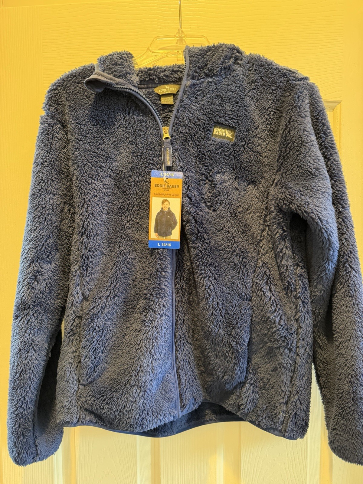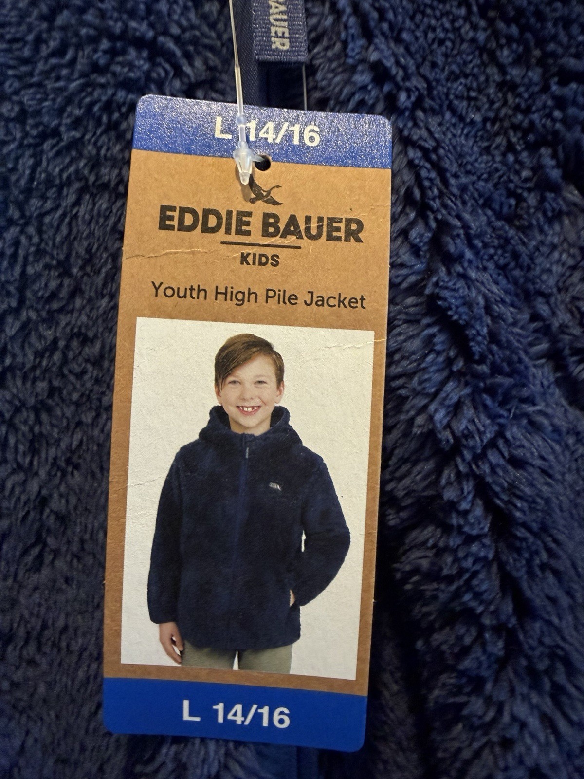 Eddie Bauer Youth Boy's Hooded Full Zip-Up Sherpa Fleece blue, Large 14-16